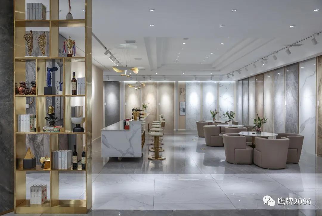 但是起初终端展厅用普通的展示方式来销售水墨京砖太吃亏了,水墨京砖是要讲故事的,要有一个很好的氛围才能让客人有想象空间。我当时还在想要给水墨京砖做一个单独的展示空间,没想到这个想法与鹰牌2086总部不谋而合,去年在总部开业的京砖艺术馆我有去看过,被惊艳到了,非常高级,就是要有这样的氛围才能体现水墨京砖的价值。