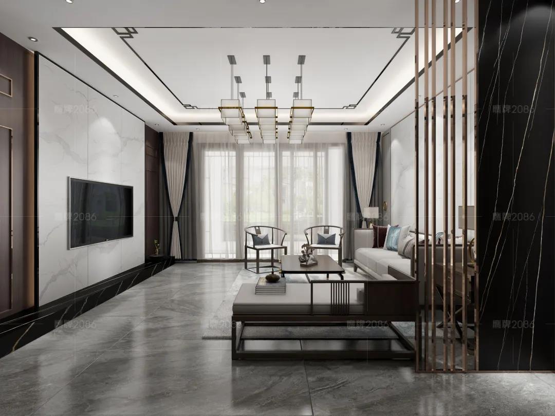 把格局打开,看看「新中式」风格遇上如今最火热的新型装修材料「岩板」,会碰撞出怎样的火花?
