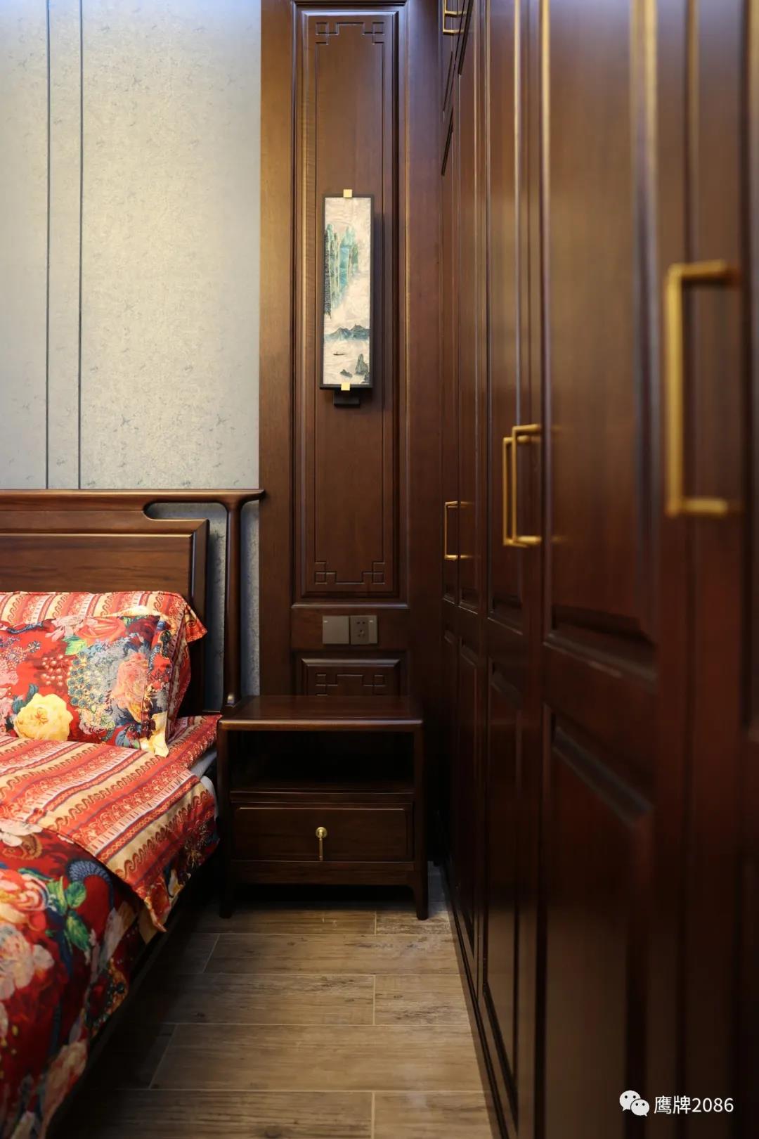 刺绣锦鲤、原木边几、迎客松盆景、简约中式家具......软装家具处处展现东方元素,传达业主对中国美的热爱。
