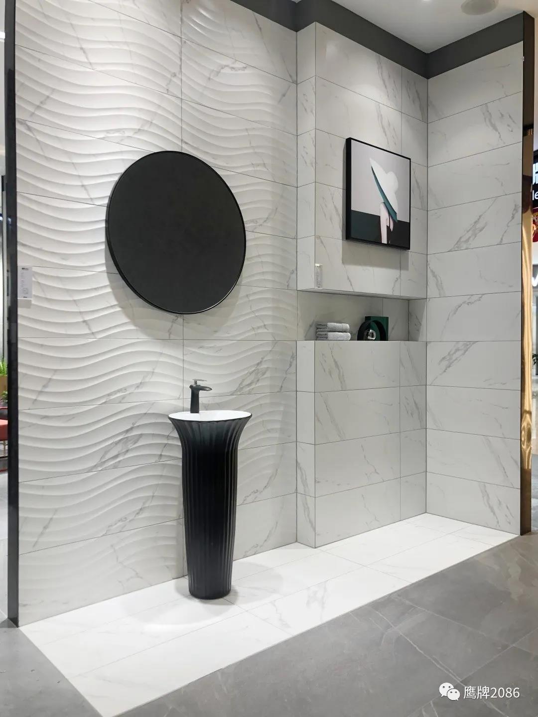 ▲意象青花系列上墙更灵动活泼,打破了空间的平淡与单调。