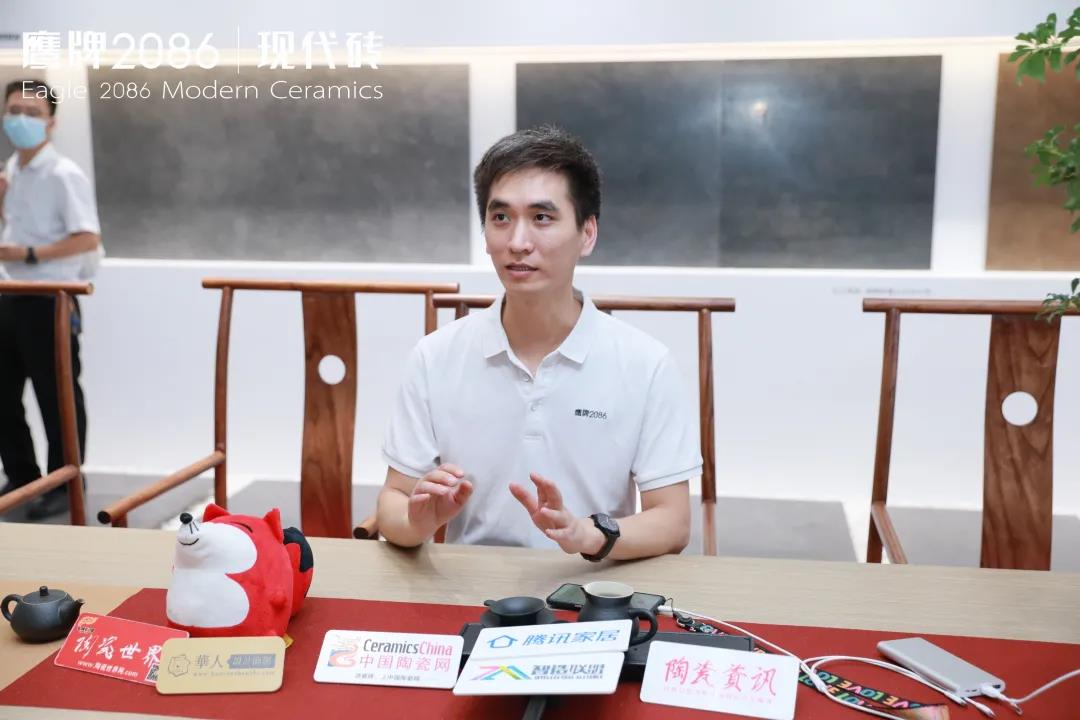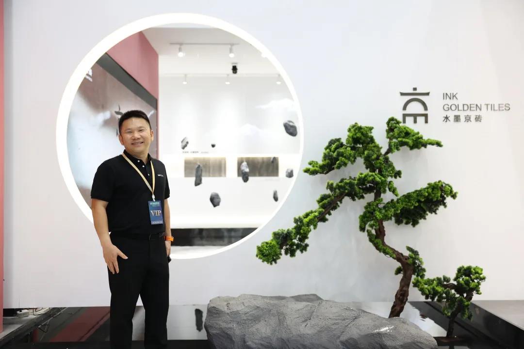 ▲广东鹰牌陶瓷集团副总裁陈贤伟莅临展位