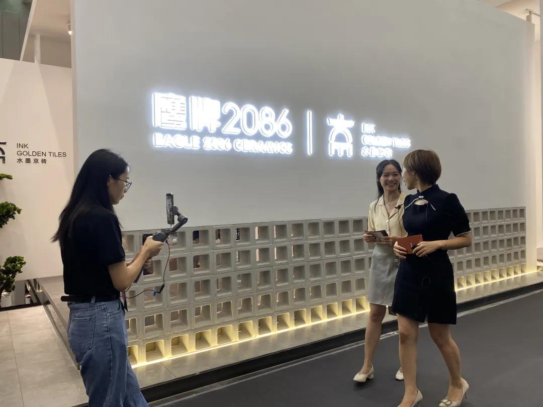 展会第一天,京砖文化馆进行了两场直播,弥补了因疫情影响的流量缺口。上午11点,鹰牌2086人气主播紫琦和设计师升升进行展位首播,用简短精炼而又生动流畅的语言为线上观众带来了一场视觉盛宴。