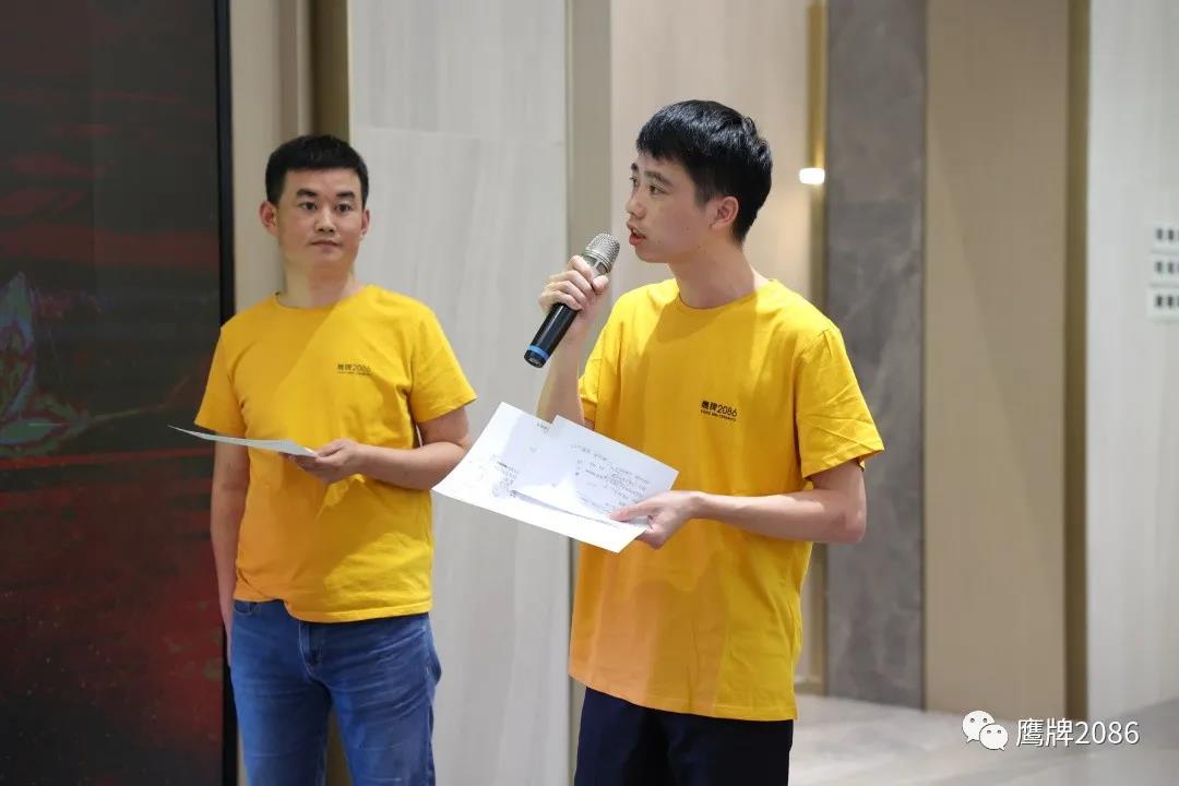 活动结束后,陶瓷十大品牌鹰牌2086营销中心总经理助理朱文强对活动进行了点评,分享了他在鹰牌集团十几年的经验历程,以此激励着鹰牌2086小伙伴们进步成长,同时对年轻人寄予厚望:我的今天将会是你们的明天。
