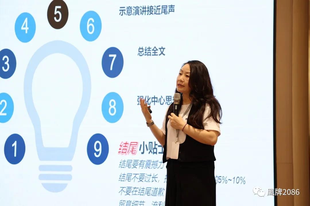 继上次《商务礼仪》培训之后,鹰牌2086全国零售部总监张彩娥又开启了一场干货课程《演讲技巧》,从开场到结束,从语言艺术到动作指导,张总进行了详细的讲解,她说到:不管是信息型的演讲还是说服型的演讲,掌握相应的演讲技巧是非常必要的,也是营销人员在外洽谈、商务交流的加分项。