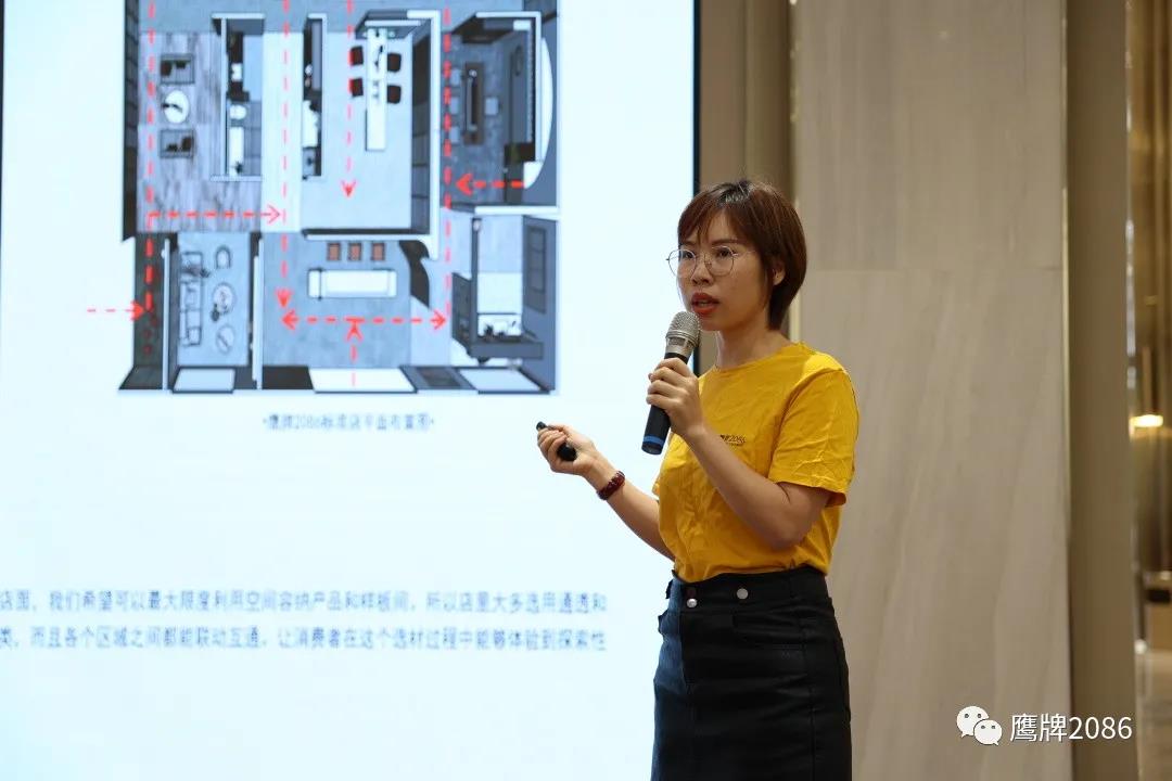 随后,由鹰牌2086设计部经理周升升为大家讲解全新的“终端店面设计标准”,如何让终端经销商“卖好砖”和“好卖砖”,一个有标准而又因地制宜的终端展厅必不可少。