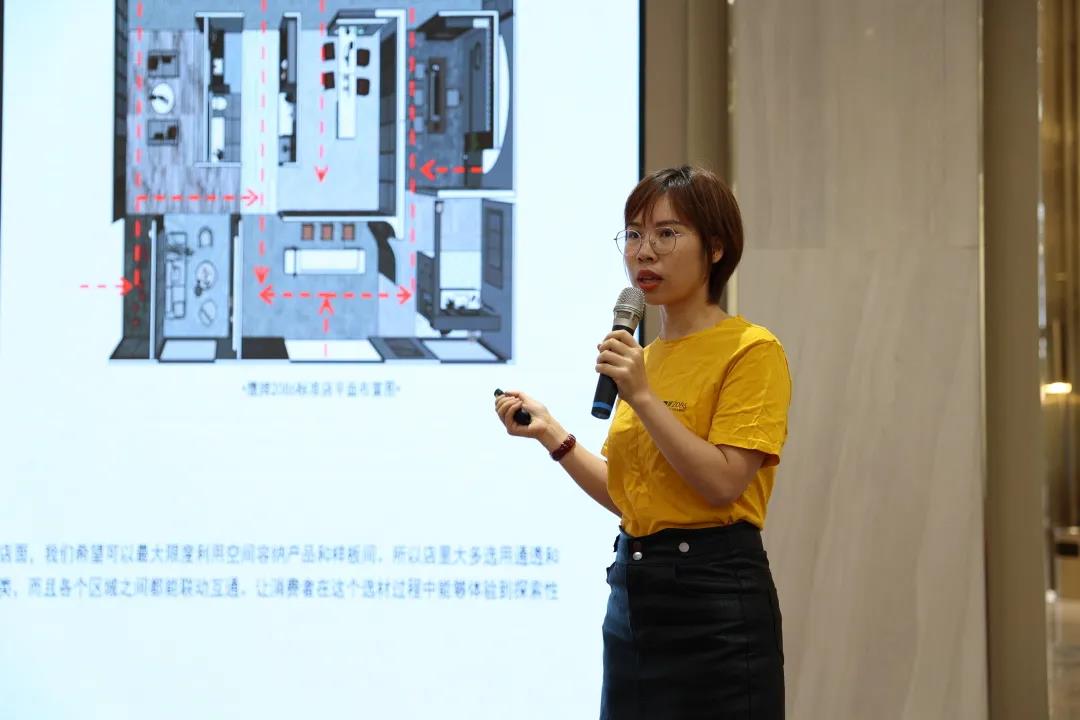 9月3日内训会上,鹰牌2086设计部经理周升升以“终端店面设计标准”为主题进行分享:2021年鹰牌2086终端专卖店的全新整合升级,从品牌标识、产品展示、软装搭配、文案辅助等各方面实现统一标准化输出,以现代、时尚、有设计感和美感的空间,带给消费者愉悦舒适的一站式选购体验。