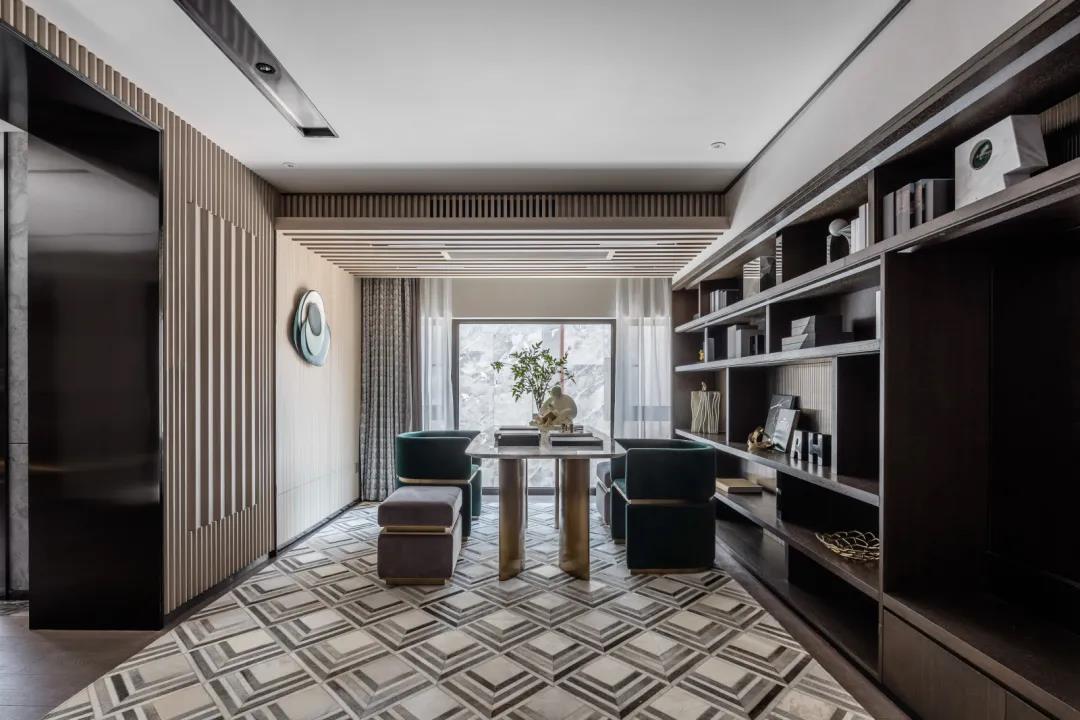 空间令人感受到一种丰富的简约,有着豪奢的风骨,在传统与现代之间,折射出 一种雅致。设计也与当代时尚生活模式相接轨,轻松自在地打造出生活感与美学 感的巧妙平衡。