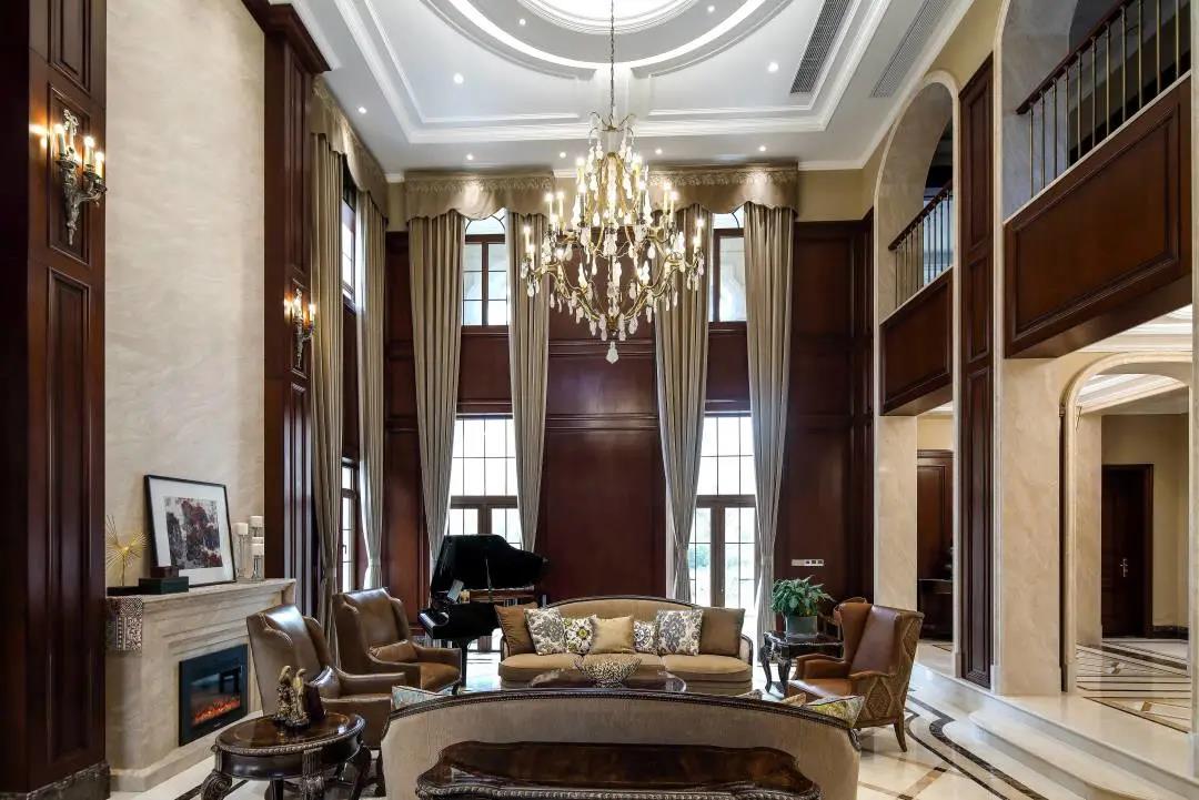 这座位于成都双流的独栋别墅,共两层,面积为340平方米。一楼大厅是7米高的 挑空空间,7米高的墙面上,一正一侧各辟出五米高的大窗户,最大尺度地将室内 与室外融合为一体。