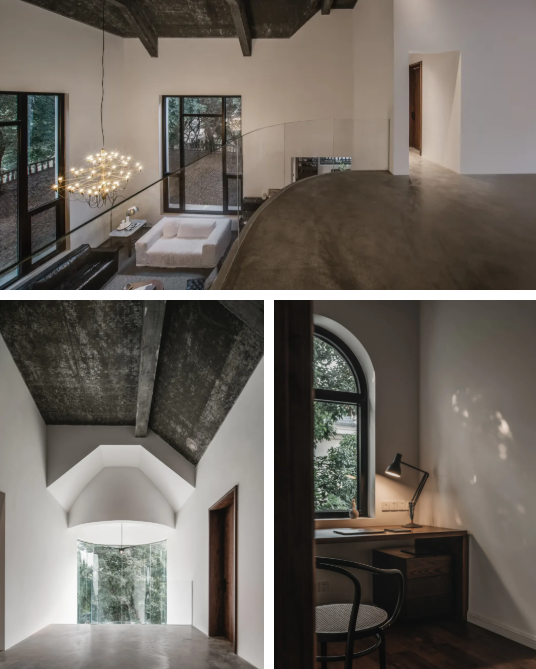 空间内敛、克制,弱化传统意义上的装修,尽量不予显露人为的痕迹,完成了一 次润物无声的内在转化,还原了生活的日常本真与精神质性。
