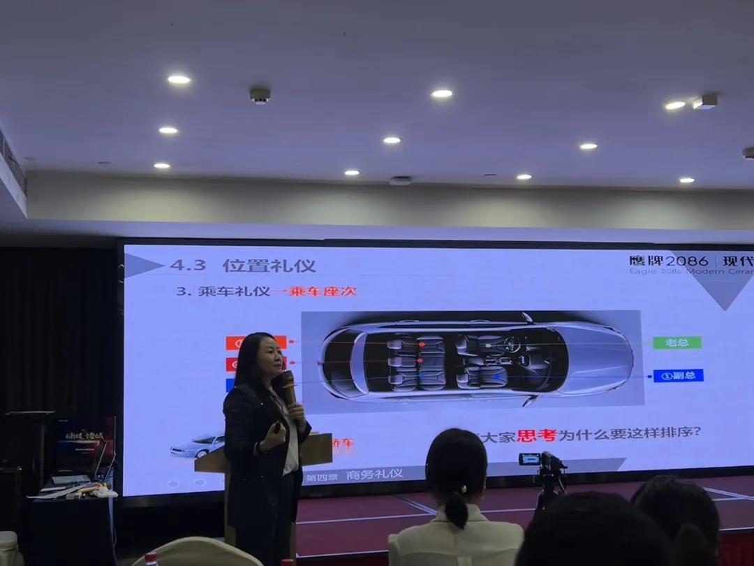 商务礼仪是职场必备的一项职业技能,是高素质团队必备的行为规范。12日晚,鹰牌2086全国零售部总监张彩娥为大家准备了精彩的《商务礼仪》课程,重点讲解了商务行为礼规的应用,商务活动中适合的衣着、打扮、商务用语、会议座次、宴会座次、商务车座次、电梯礼仪等,现场理论结合实操,现场讲解、现场演练、现场掌握,全面提升了销售精英们的商务礼仪知识,内强素质,外强形象,重塑新面貌,迎接新的挑战。