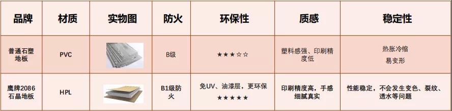 瓷砖十大品牌鹰牌2086HPL石晶地板,是由高科技的防水无醛石晶基材及HPL防火板与装饰纸层组合而成,是国内原创、拥有超高性能的新型防火地面装饰材料,其采用天然的大理石粉构成高密度、高纤维网状结构的坚实基层,表面覆以纹理清晰立体的装饰纸层,防火板层的添加让地板拥有阻燃、耐磨、耐烟头烫伤和耐刻划性能。