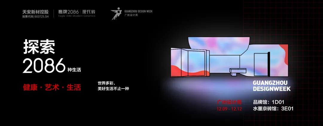 今年,鹰牌2086依然在广州保利世贸博览馆拿下两个展位——「品牌生活馆1D01」和「水墨京砖馆3E01」,我们不仅有“青春”,还有“健康”与“艺术”,融合材料、生活、设计美学,为观众带来全新的「2086种生活」。