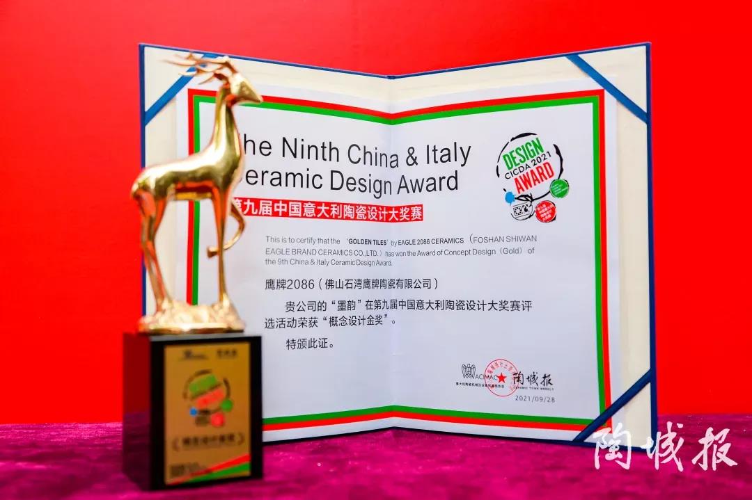 墨韵系列凭借独特的设计理念和极富设计感的产品纹理,荣获2021年第九届中国意大利陶瓷设计大奖赛“概念设计金奖”。
