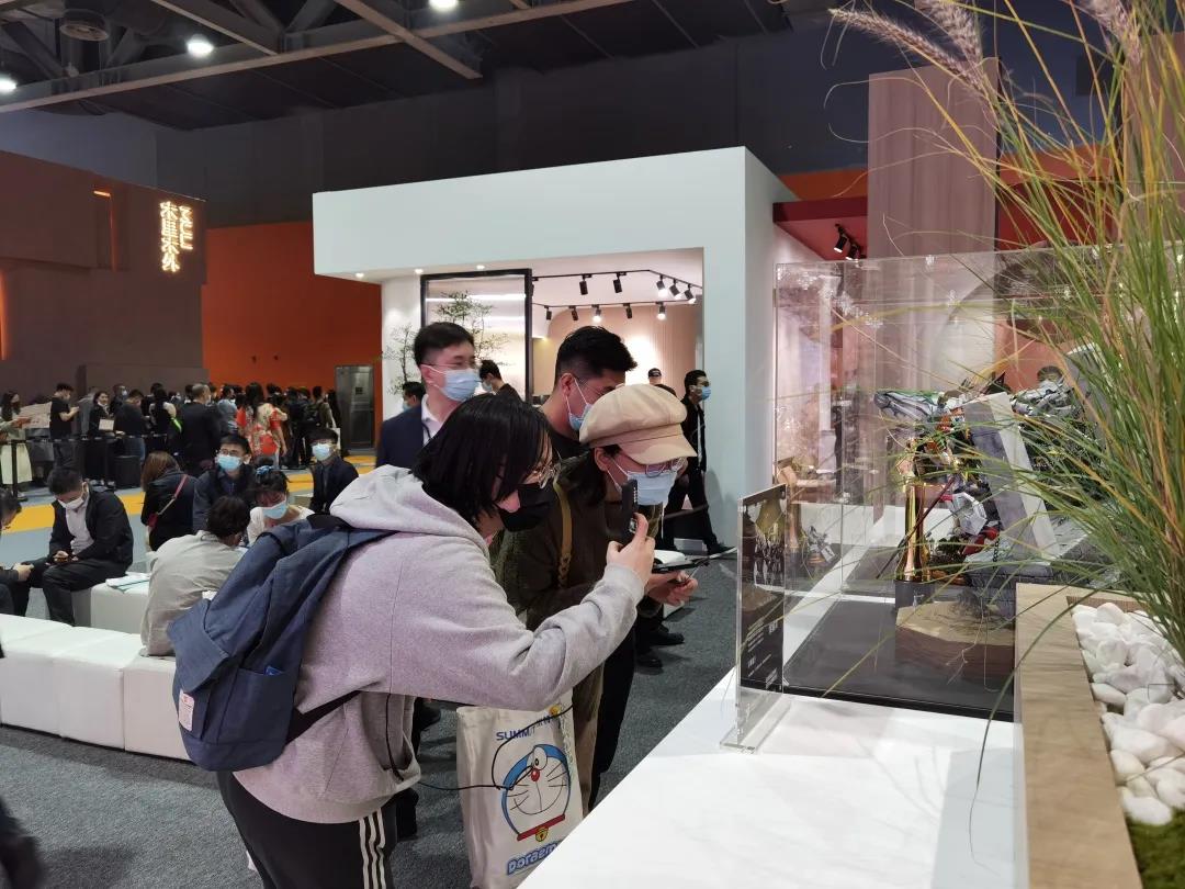 与诗意生活相匹配的,是鹰牌2086的形象产品——水墨京砖&意象青花,在这有文化有格调的环境里,产品展示似乎变得像是一幅艺术品,值得观众们驻足欣赏。