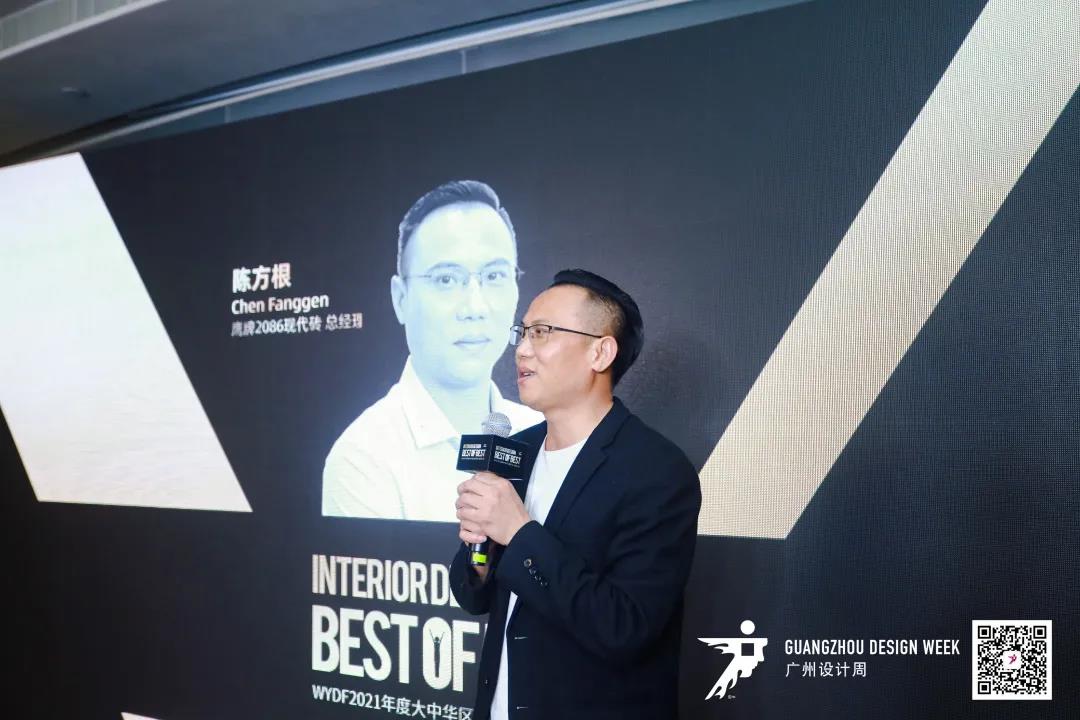 鹰牌2086营销总经理陈方根首先对疫情环境下来到现场的嘉宾表示了感谢并对获奖的设计师表示祝贺,陈总表示:“今年是鹰牌2086与WYDF共同成长的第五年,五年来在设计的加持下,不但加强了品牌对设计的认知与理解,对质感美感的演绎,也加深了品牌对文化、对美学的提升。