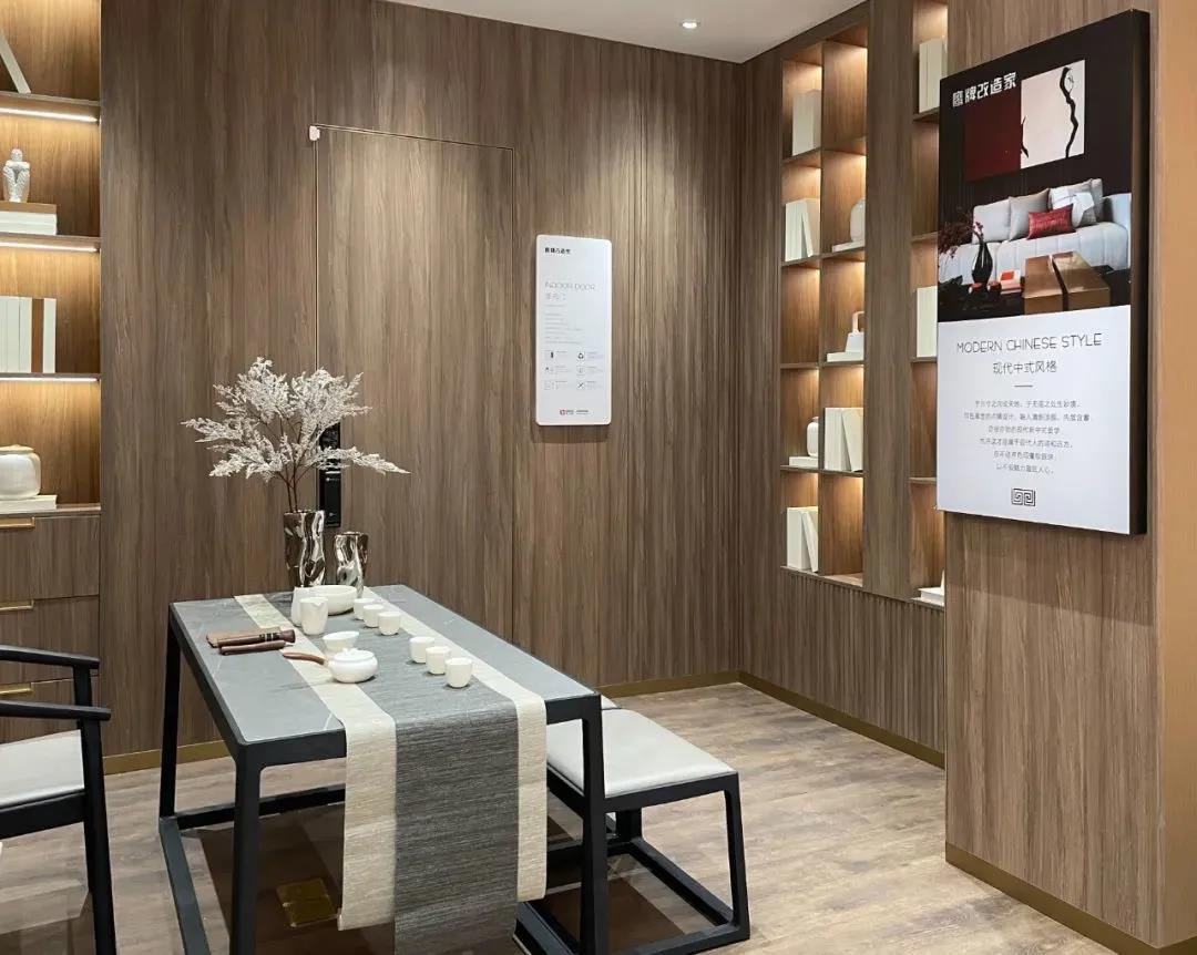 佛山总部鹰牌改造家店面完整为消费者提供了客厅、茶室、阳台、书房、儿童房的整体样板间,每个空间都能够为用户提供48小时环保焕新的空间解决方案和实际交付。