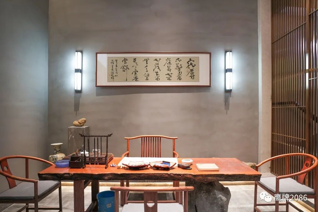 细心的网友可能发现,负二层与楼上的风格截然不同,主人运用一眼相中的水墨京砖,在负二层打造了一个新中式风格的茶室。京砖、石壁、月亮窗、字画……无一不彰显着主人内心的中国文化情怀。