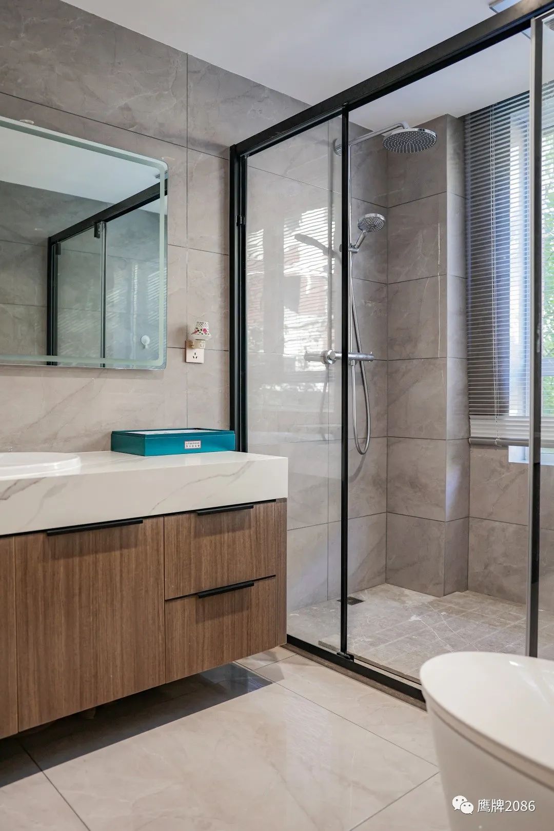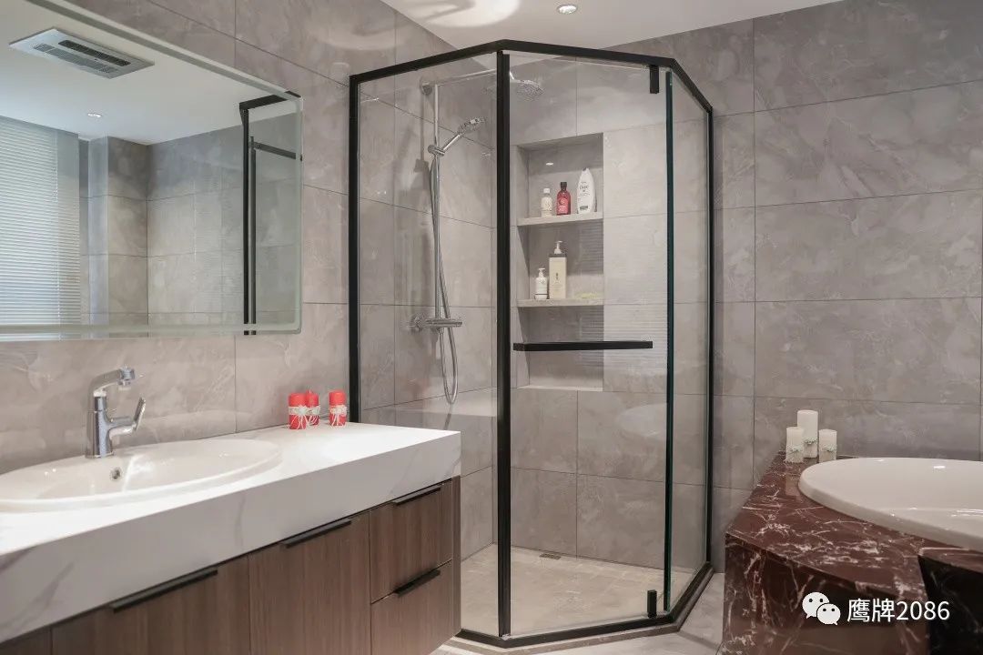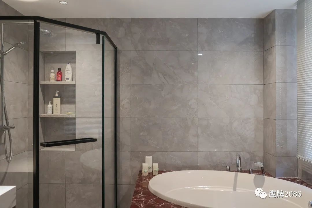 主卫浴空间墙面也选用了高级灰柔光现代砖,有格调又不显沉闷。