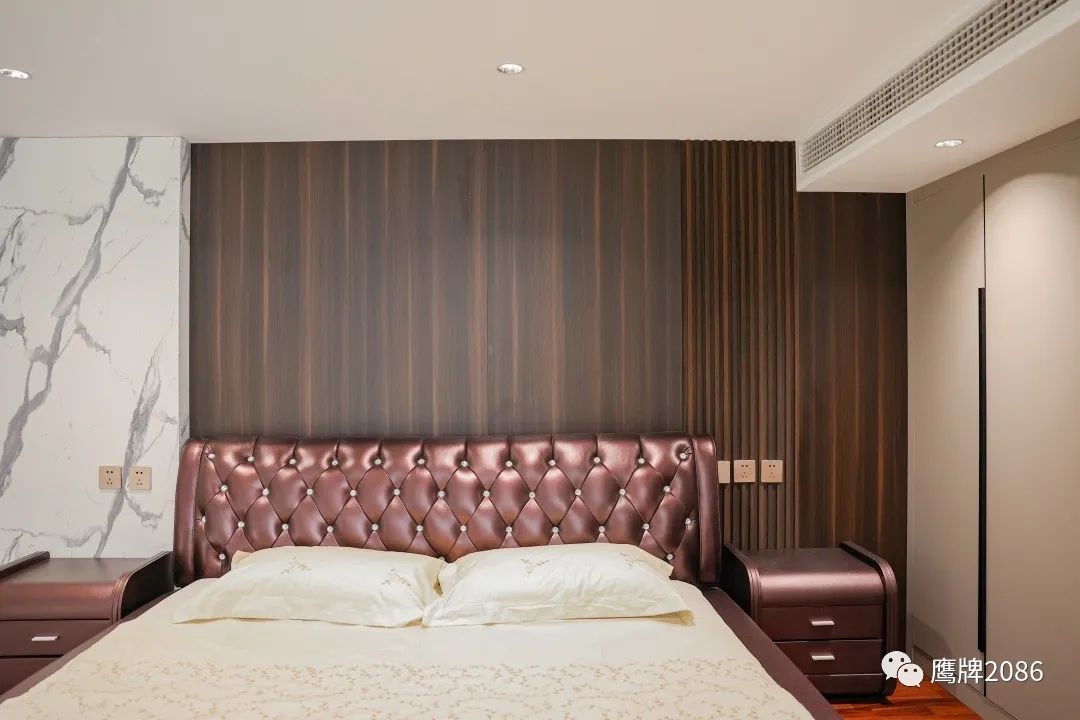 四层阁楼是客房+阅读空间的结合,深咖色木饰面搭配白色大理石岩板,整体效果更富设计感与立体感,阳光洒满,安静闲暇,舒适的生活每个角落也不将就。