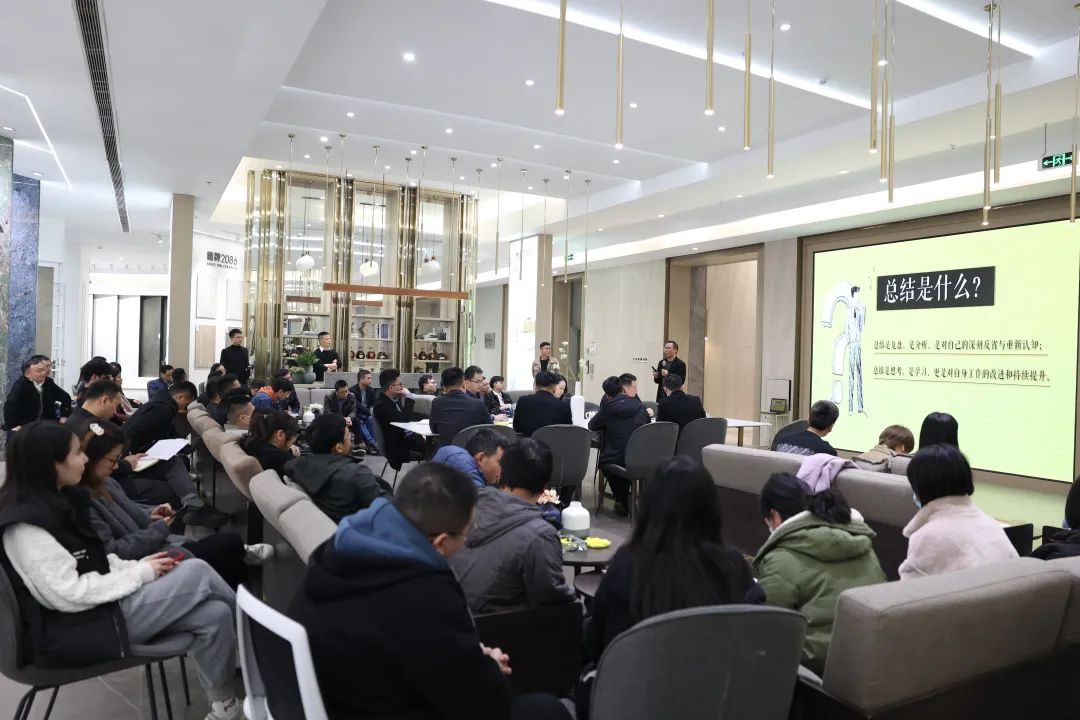 对于2022年工作规划,陈总提出了四个重点方向:聚焦区域、聚焦客户、聚焦渠道、聚焦产品。例如,在全国区域布局上聚焦区域,阵地前移,建立品牌区域绝对影响力;在产品规划方面,持续做好产品结构与库存结构的优化,同时持续研发“水墨京砖”系列;终端店面布局上打造一批新终端