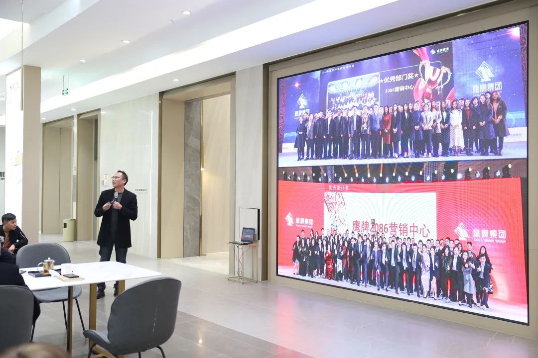 会议期间,鹰牌实业董事长吴启超先生进行了点评并指导工作,他说到:“鹰牌2086是美学空间的代名词,在全国各地区城市中,我们要做的是2086生活馆,而不是传统的家居卖场。鹰牌2086要向客户输出现代美学空间以及生活方式,通过场景化把生活美学传达给消费者,让消费者把场景带回家,享受理想的家居生活。接下来,鹰牌2086要把单品类场景延伸到多品类场景,把水墨京砖和意象青花也做到生活馆场景中,通过品牌场景留客,为消费者提供空间解决方案。”