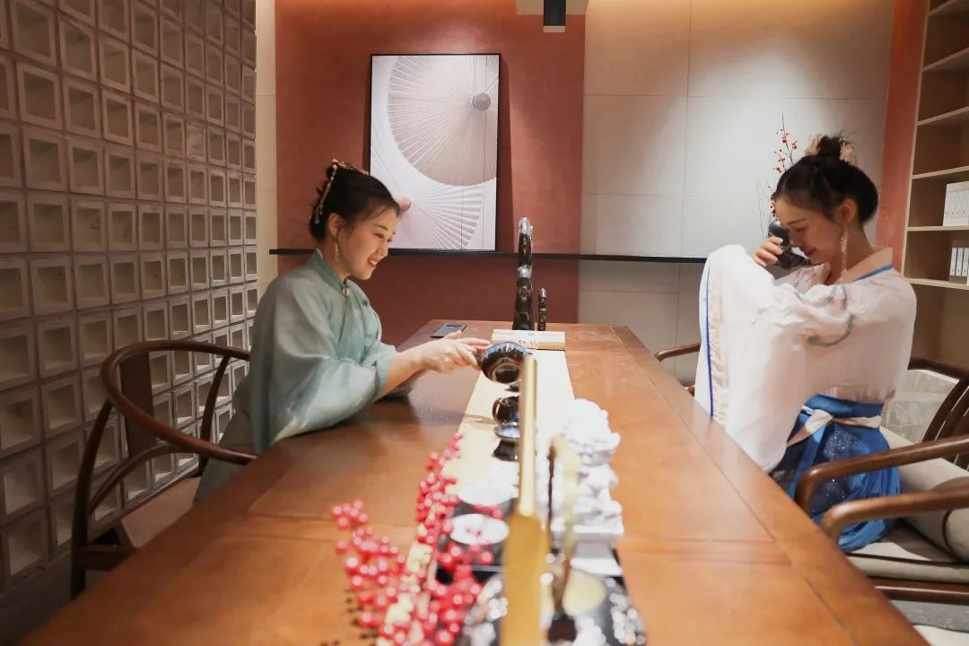 这里不仅仅是一个陶瓷展馆,还是一个独特的多功能茶室,可以一个人静静地泡茶、阅读,可以约上朋友喝茶聊天,也可以在独特的写字砖上体验古人练字的乐趣,运气好的话还能喝上前台小姐姐的手冲咖啡哦!伴着流水声,听着轻音乐,悠然自在地度过一个下午。
