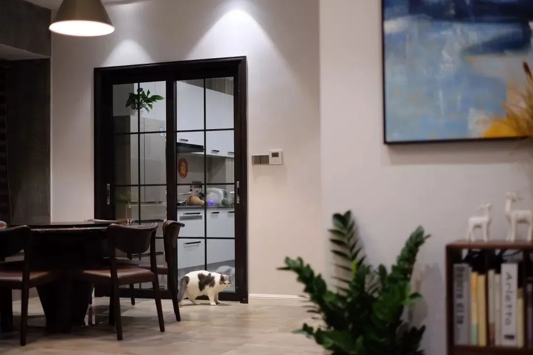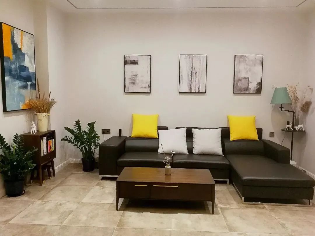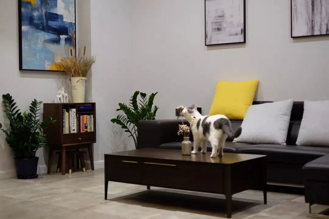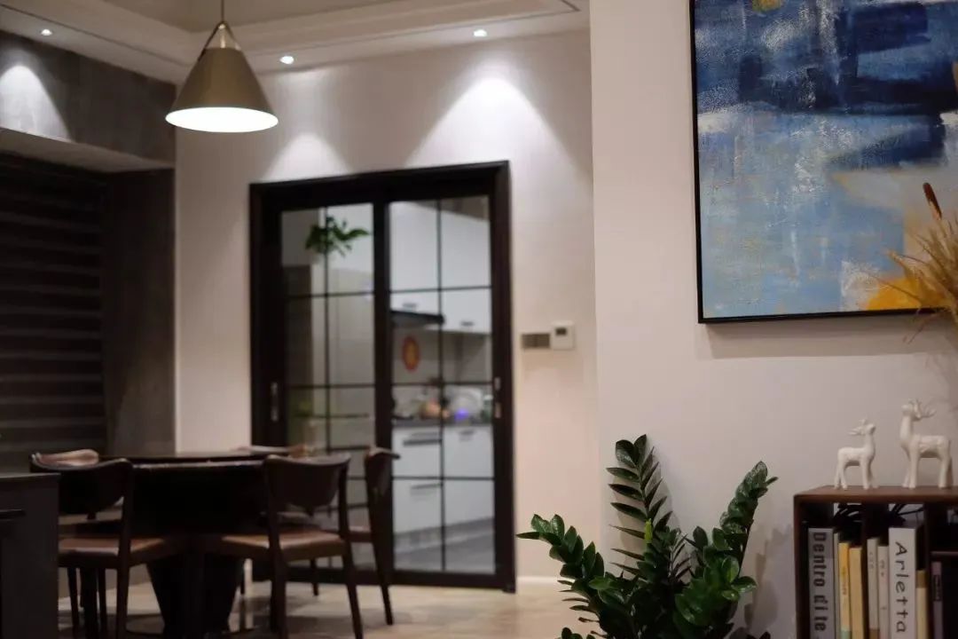 用不同颜色的绿植点亮空间的灰色调,既保留高级灰的素雅简约,又拒绝单调,增添空间的生机活力,白色装饰画增添艺术感,简单生活,恬淡舒适。