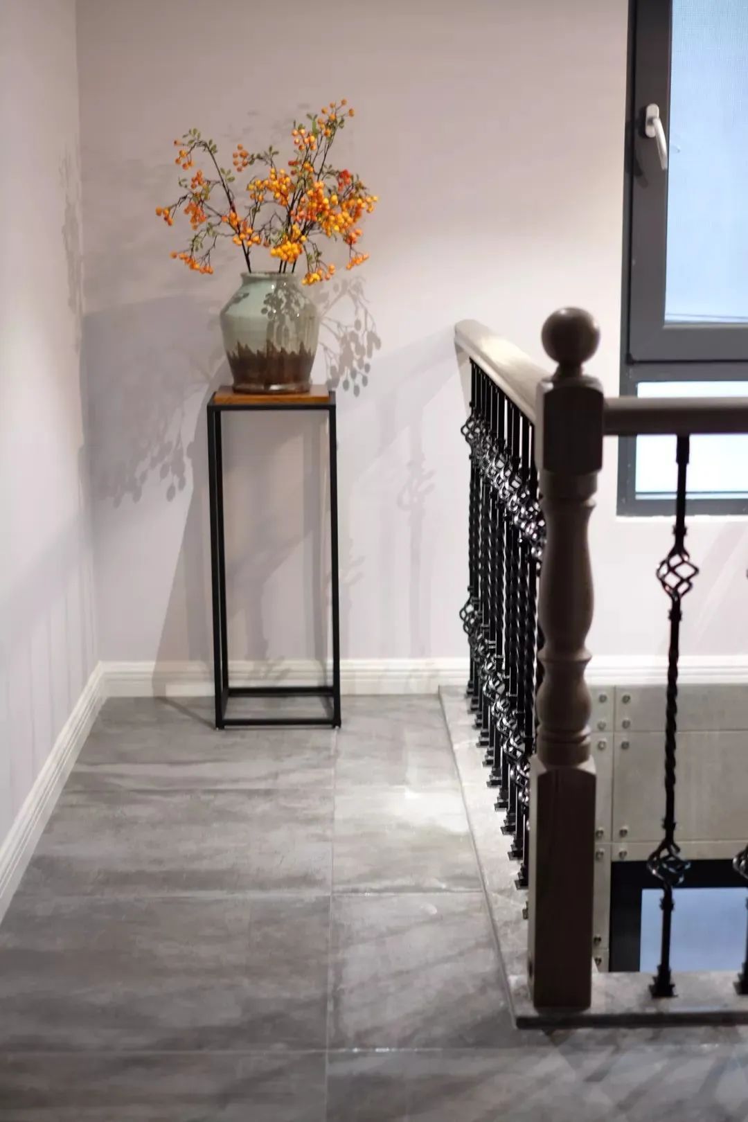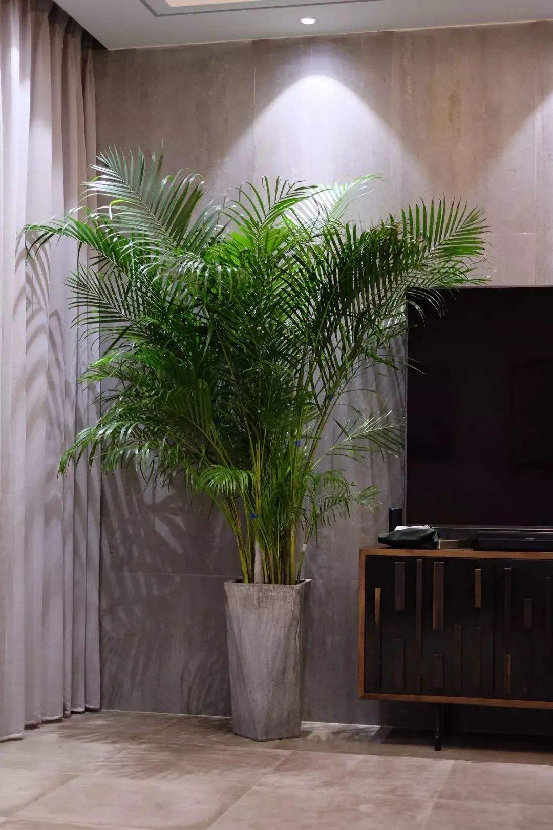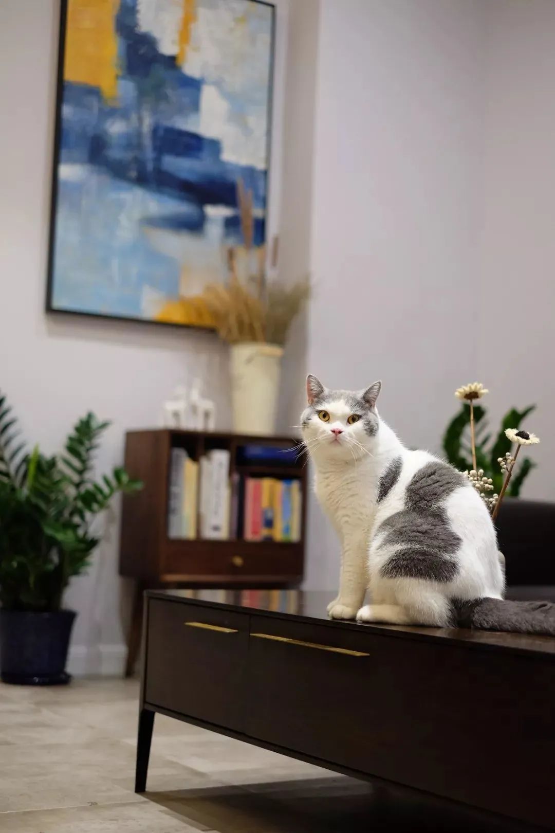 用不同颜色的绿植点亮空间的灰色调,既保留高级灰的素雅简约,又拒绝单调,增添空间的生机活力,白色装饰画增添艺术感,简单生活,恬淡舒适。