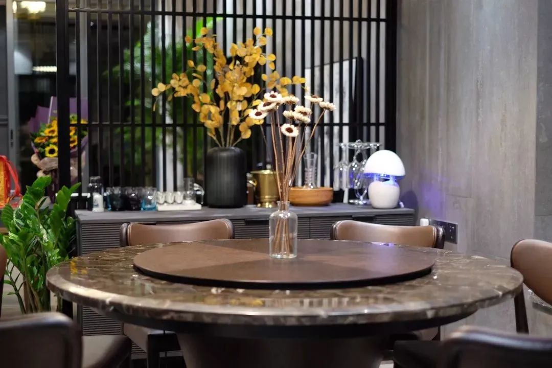 餐厅用木材与水泥元素的搭配,融合了水泥的质朴与木材的亲和,简单干净,温馨自然,空间质感细腻,层次丰富。