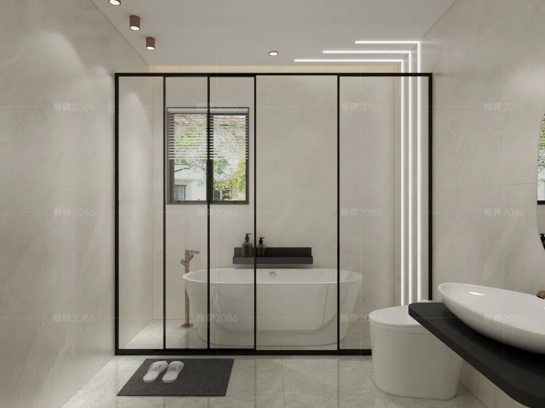 对于卫生间来说,极简也是非常棒的一种设计方案,简约的线条本身就适合干净的环境。简洁大方,清爽干净,人性化的活动空间,洗手台定制柜体,完美解决洗漱用品的收纳问题。淋浴区用玻璃门隔开,所有的功能都各司其职,一目了然。