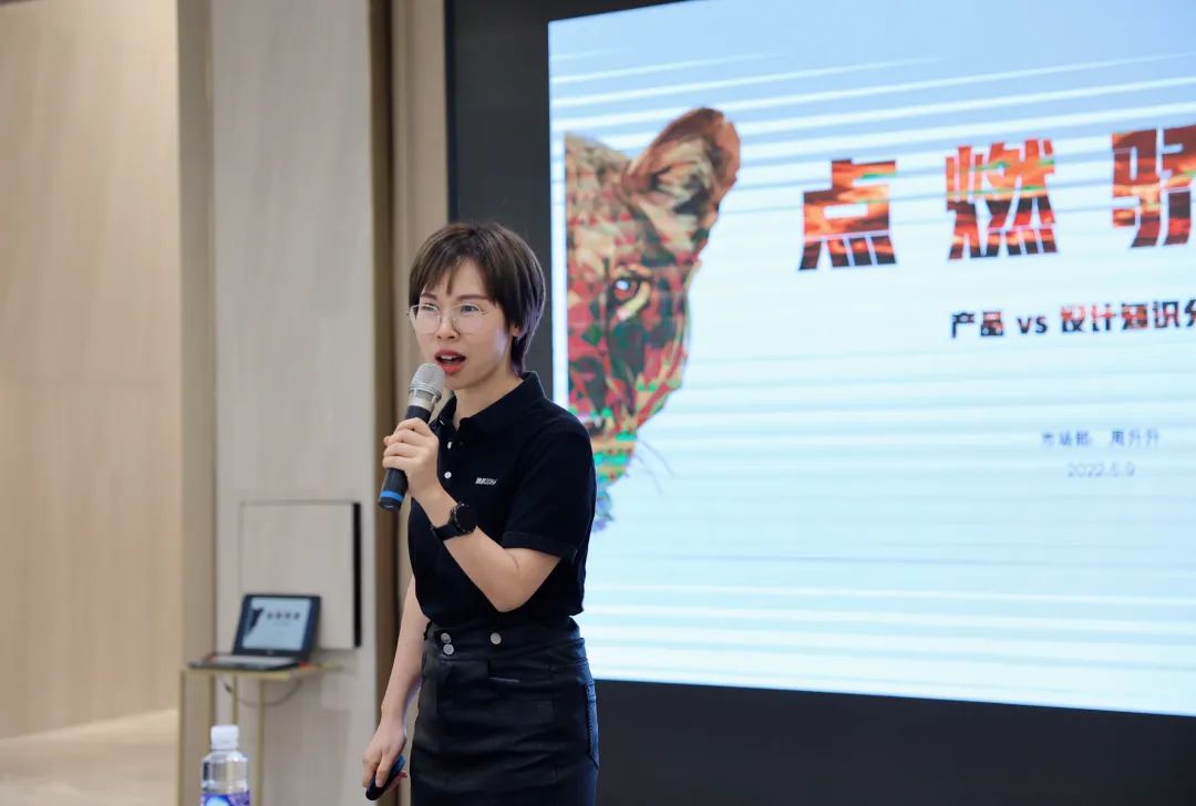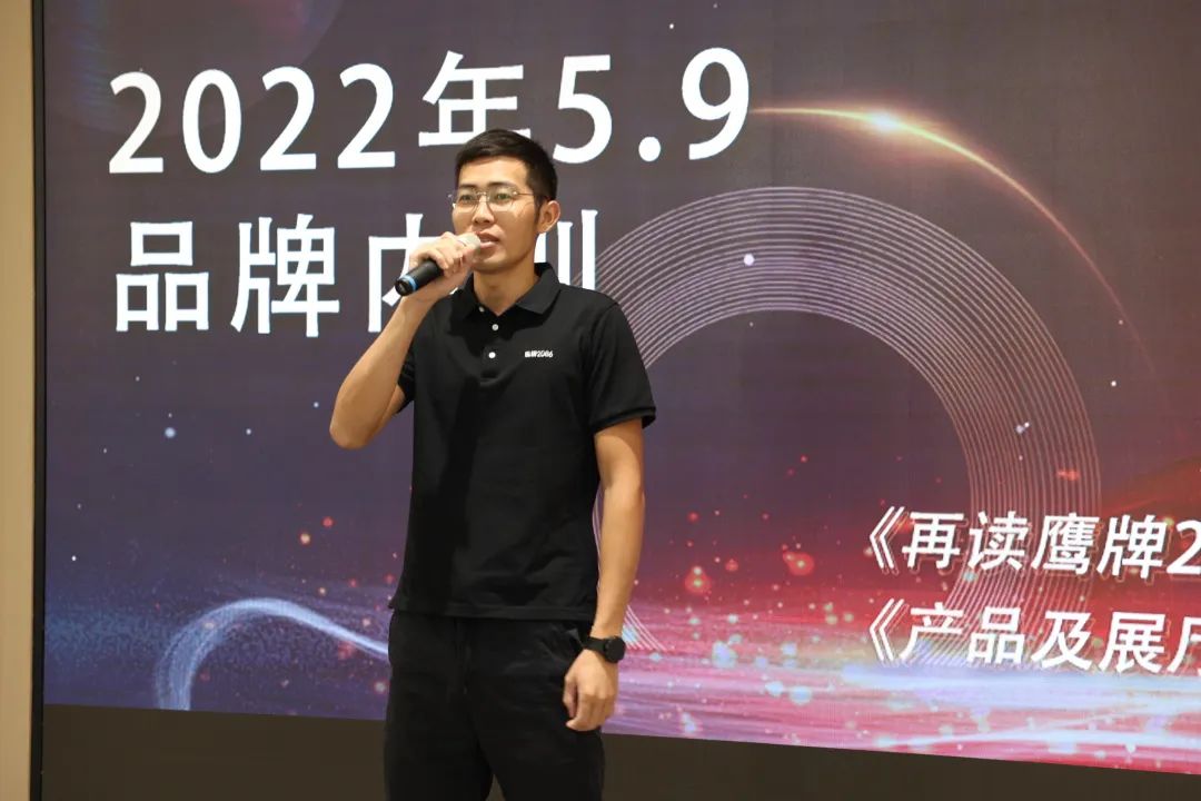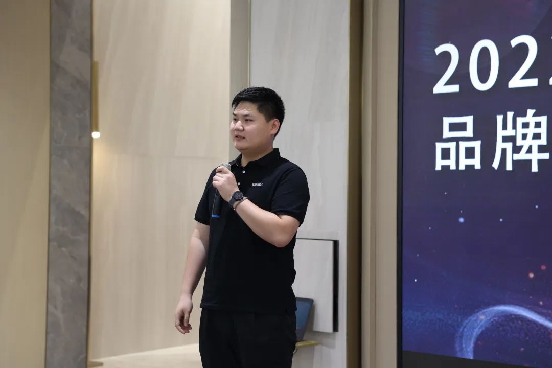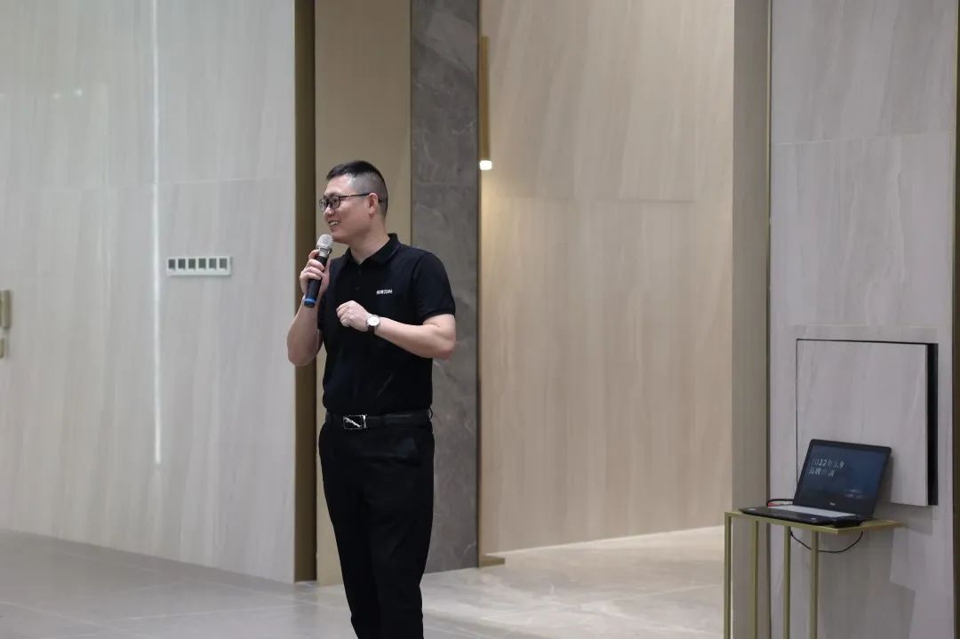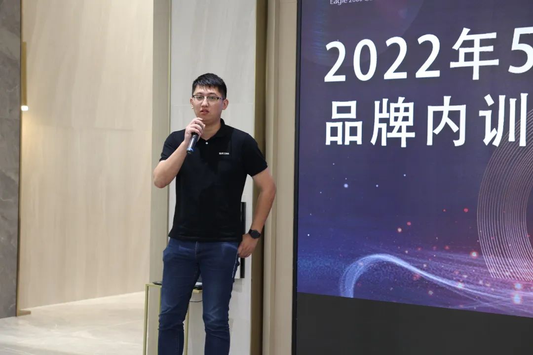 随后,由鹰牌2086市场部经理周升升用精炼的语言为大家讲解《产品及店面设计标准》。产品是品牌的基石,设计是品牌的加持,店面是品牌的落地。周经理的讲解让大家对产品和设计的应用美学有了更深层次的理解。