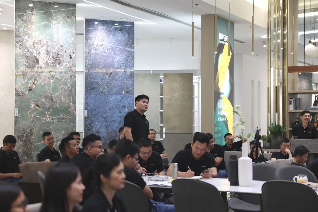 通过两位讲师绘声绘色的授课,现场随堂提问,课后有奖竞答,让小伙伴们更积极、更有效地学习相关知识。品牌+产品+设计的三重加持,让各部门同事充分储备知识,以应对市场竞争;让终端经销商“卖好砖”和“好卖砖”。