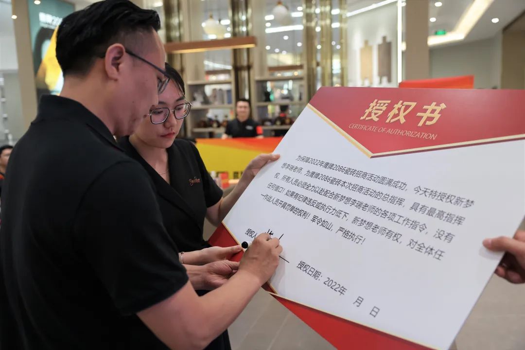 陈副总裁一番慷慨激昂的演讲之后,授权新梦想李瑞老师为鹰牌2086招商活动总指挥,具有最高指挥权。在陈副总裁与总指挥官的双重肯定与鼓舞下,招商战士们激情饱满,信心倍增!