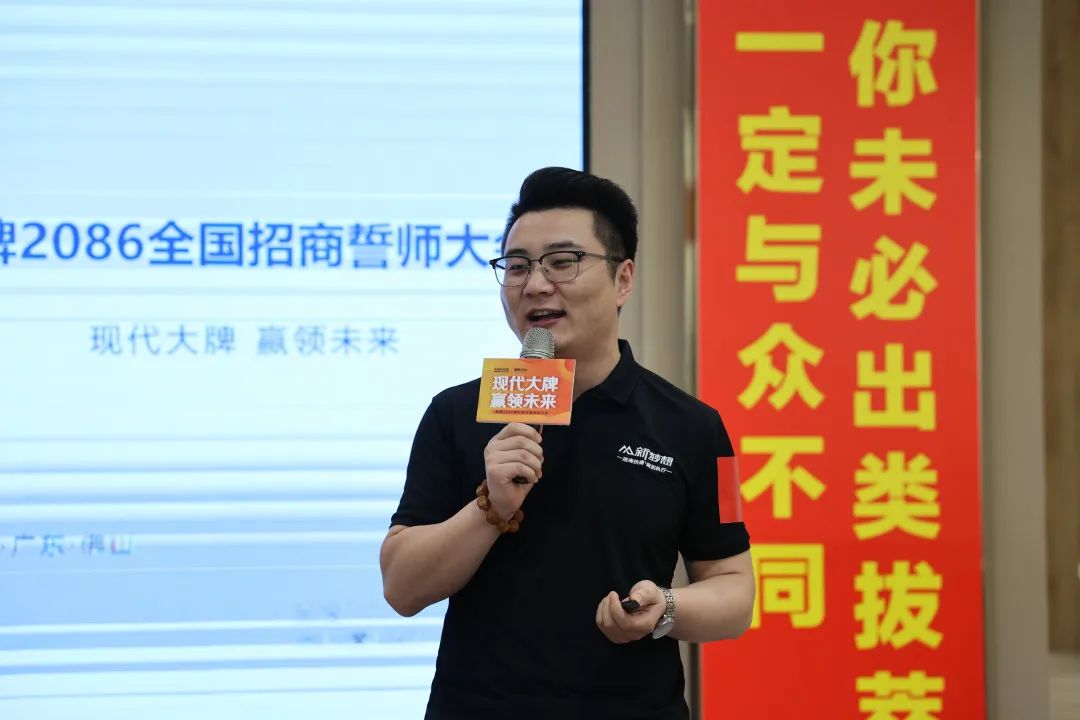 招商启动会伊始,鹰牌集团副总裁/鹰牌2086营销总经理陈方根为大家加油鼓劲。他表示:面对外部环境的不确定性和市场变化,我相信在座每一位都充满了焦虑和迷茫,不知道要做什么,不知道要怎么做,如何提升自己,如何构建优势。这次品牌联合第三方去做专项招商活动,就是在动荡不安的市场环境中给大家指明方向,在这个阶段工作聚焦,专项突破,以全力以赴的态度和竭尽全力的付出,迎接挑战,最终一定能达到超出预期的结果。