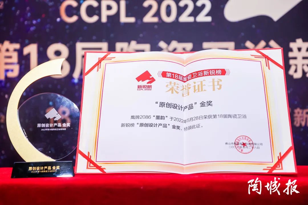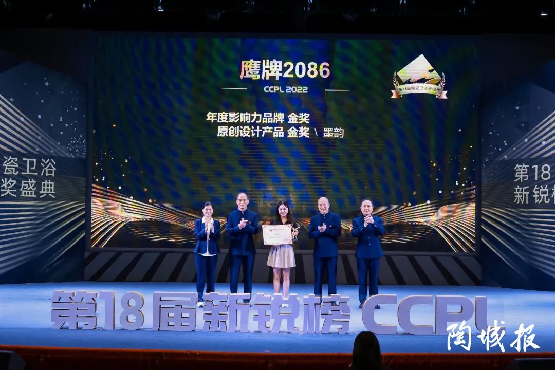 年度影响力品牌旨在颁给2021年度陶瓷领域表现最优秀、具有新兴力量的品牌,鹰牌2086凭借个性鲜明的品牌形象、发展快速的营销策略、令人瞩目的品牌推广等,得到业界好评和品牌关注,也得到专业评审的认可,荣获“年度影响力品牌金奖”。
