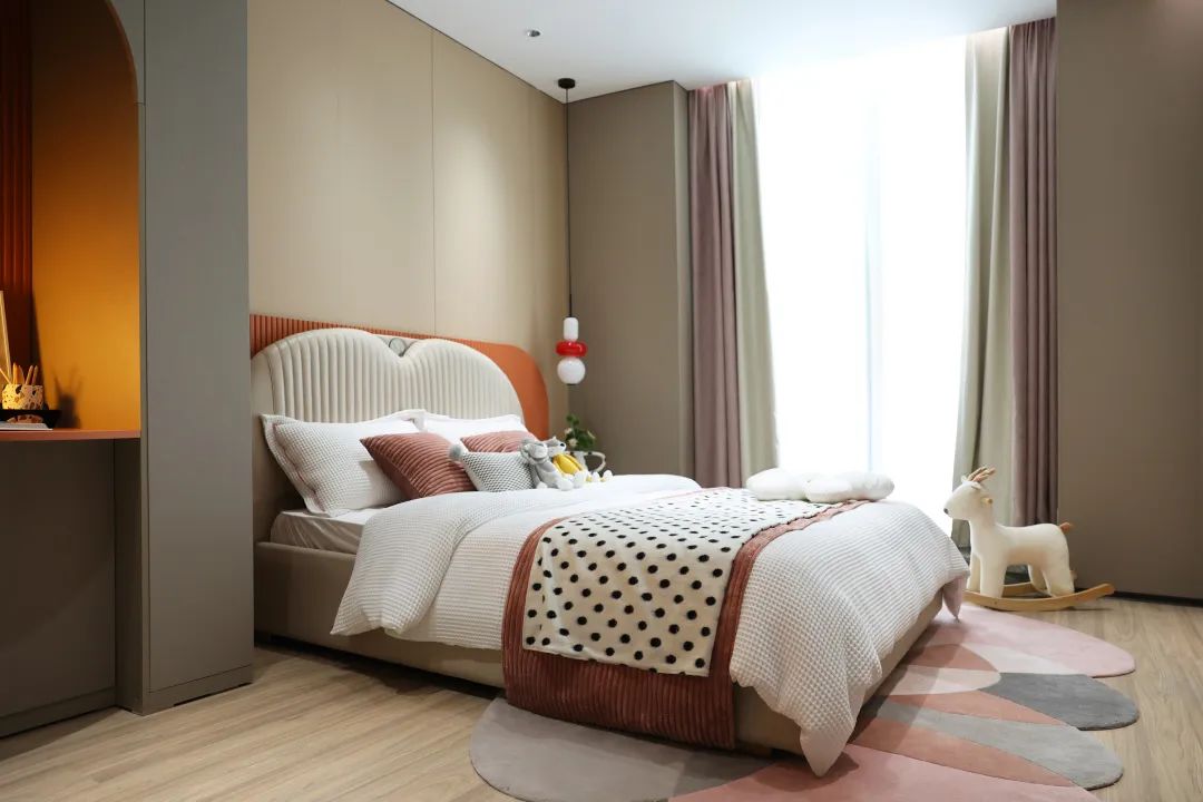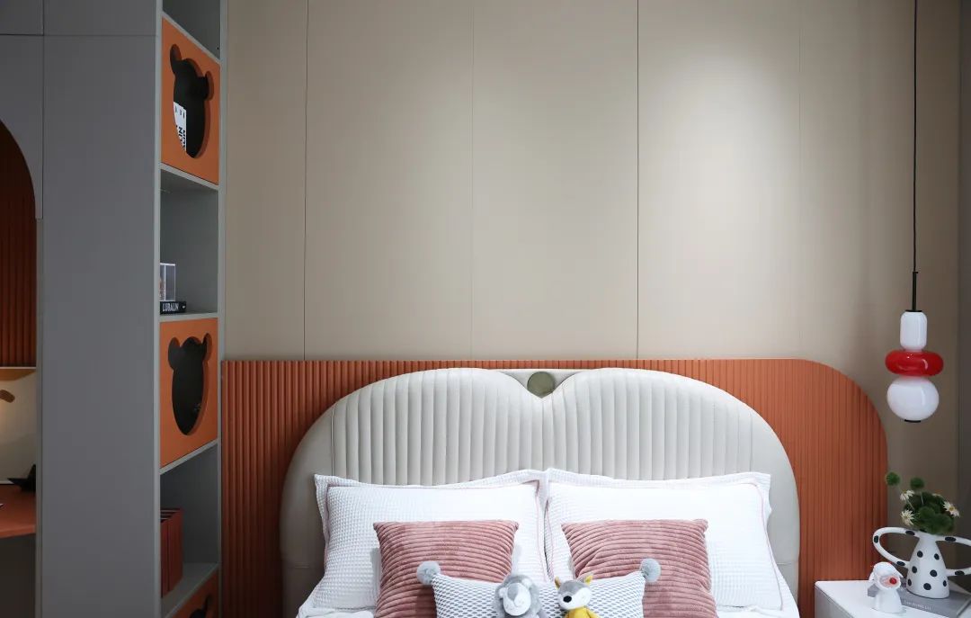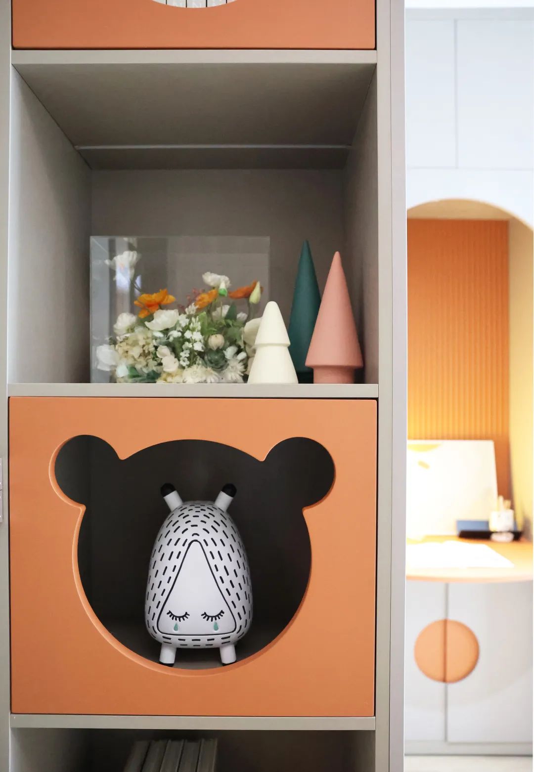 温馨甜美的女儿房,色彩活泼鲜明,搭配造型柜体,使整个空间充满童趣。软装配饰可爱又充满寓意,每一样都引诱着孩子去触摸去感受。