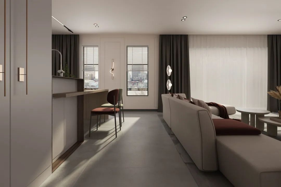 这是一个125㎡现代轻奢住宅,时尚与质感生活的融合,明亮的自然光,浅色调的配色,渲染素雅宁静的空间气息,再辅以简练的线条和简洁的陈设,表达出简约而不失格调的生活态度。