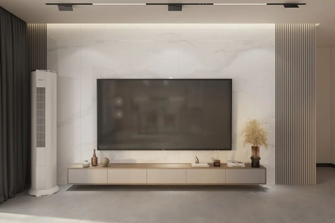 电视背景墙整面连纹大板,大气独特,增加长城板视觉效果更丰富。