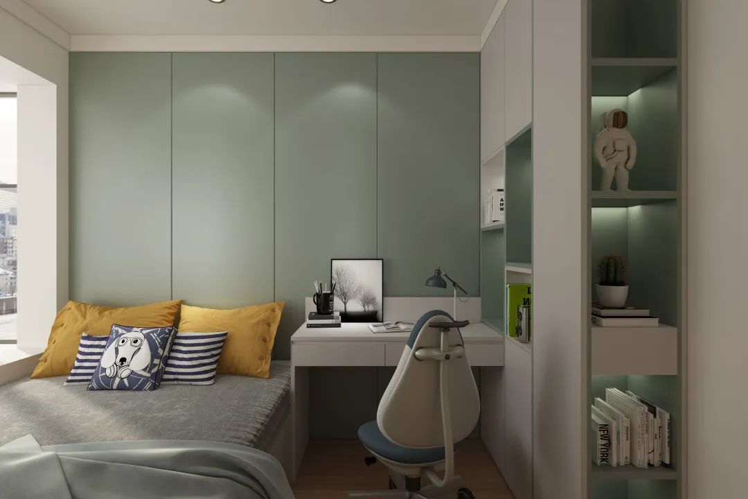 果绿色墙板与柜体颜色一致,清爽活泼。1.5米宽