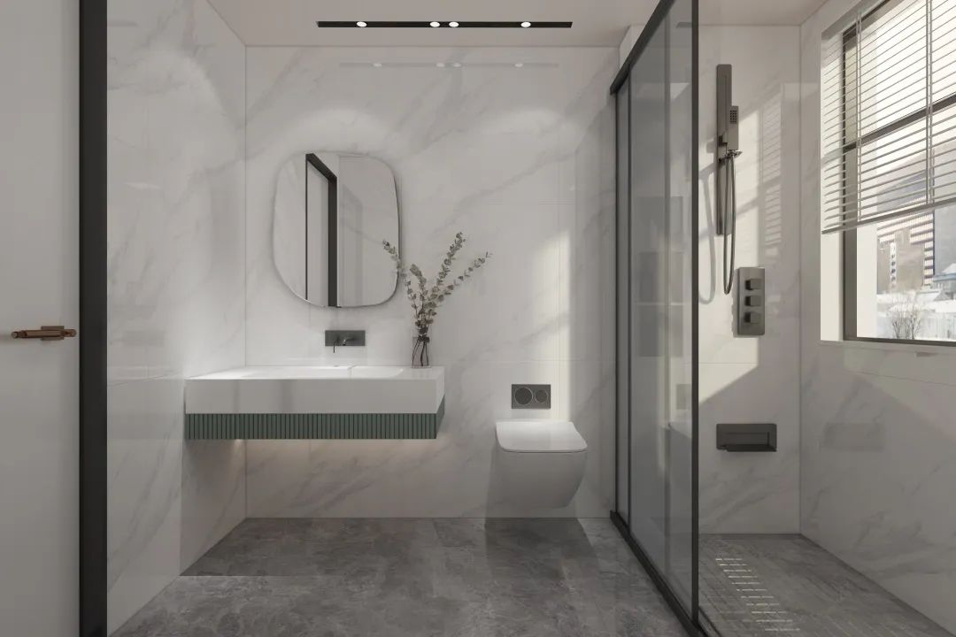 公卫使用精装优选的无限连纹产品,配合同色美缝,可以减弱分割感,打造一体式效果,简约清爽。