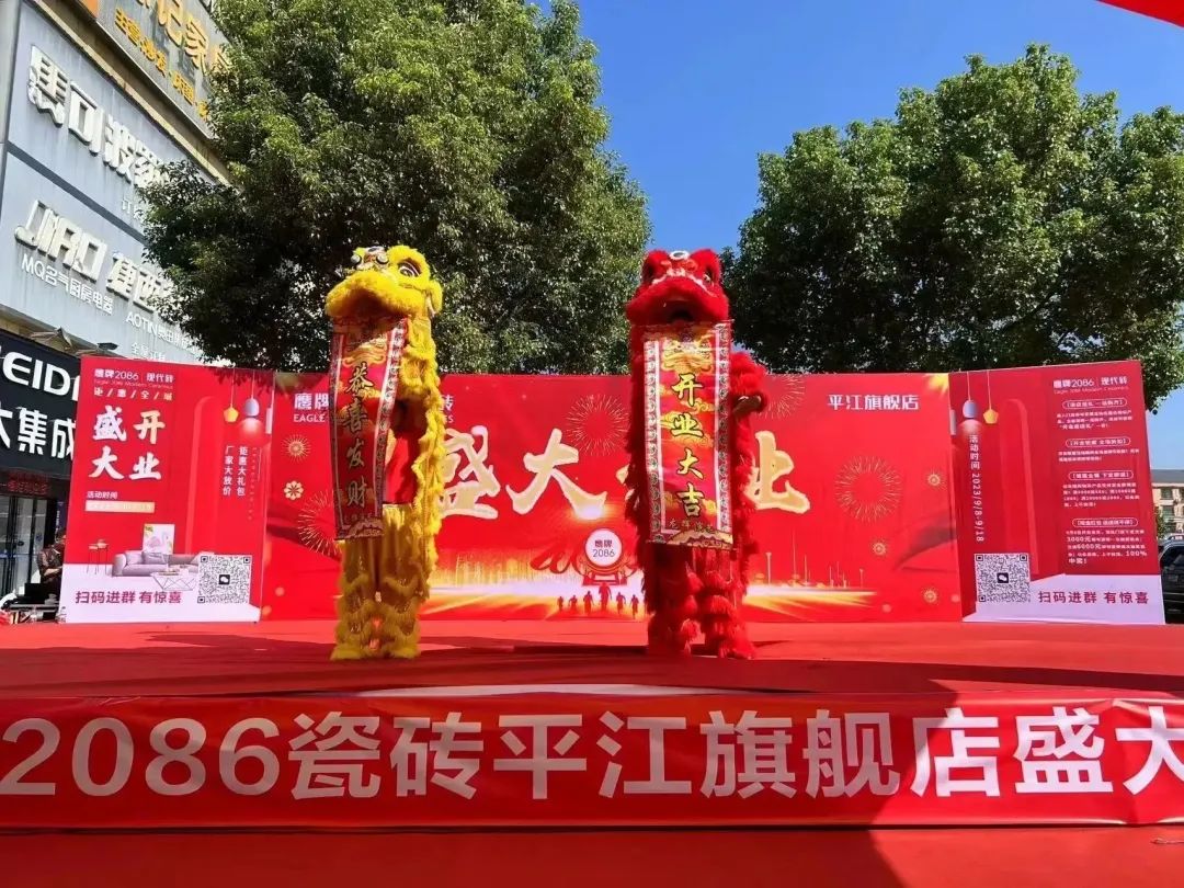 9月8日,鹰牌2086湖南平江旗舰店迎来了盛大开业庆典,现场热闹非凡,锣鼓振天鞭炮鸣,醒狮拱门贵客临!