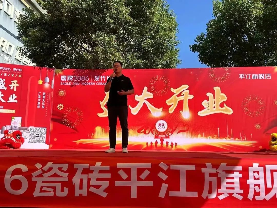 鹰牌2086平江旗舰店总经理朱大根先生和鹰牌2086总部华中区域销售总监黄伟杰先生分别致辞,对现场朋友们的到来表达了热切的欢迎和感谢,并期待在接下来的日子里,与在座的各位继续共创美好未来,一同揭开平江瓷砖行业的新篇章!