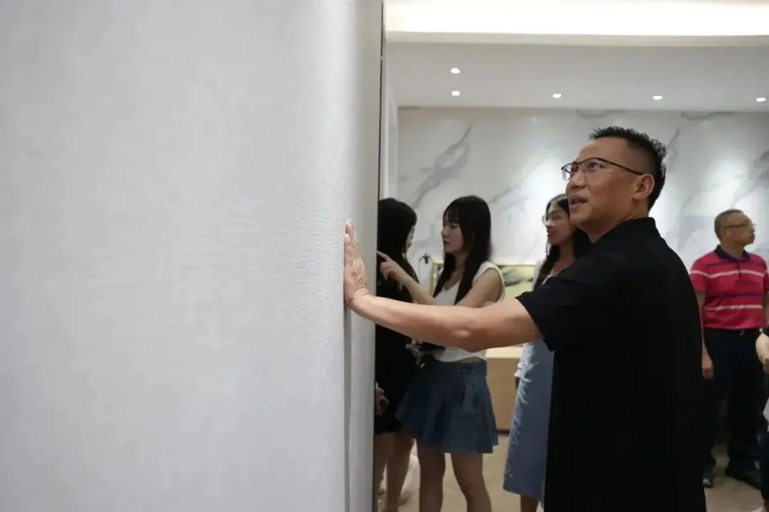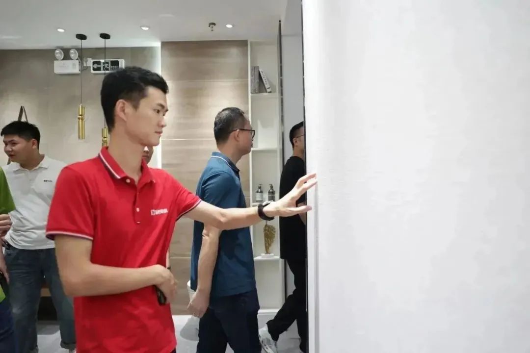 在正式培训开始之前,主持人引导大家有序前往质感墙衣样板间参观感受,对于鹰牌集团在新品类研发上的创新,各位营销人员皆表示赞叹,并带着好奇心与好学心参加这场充实的培训。