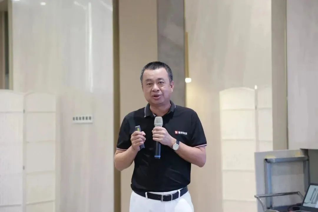 天安新材/鹰牌实业董事长吴启超亲临现场,进行一场以“向新而行 与心和鸣”为主题的深度分享,从多个维度解析质感墙衣的战略定位,给鹰牌集团营销团队的“出发”指引明确的方向。