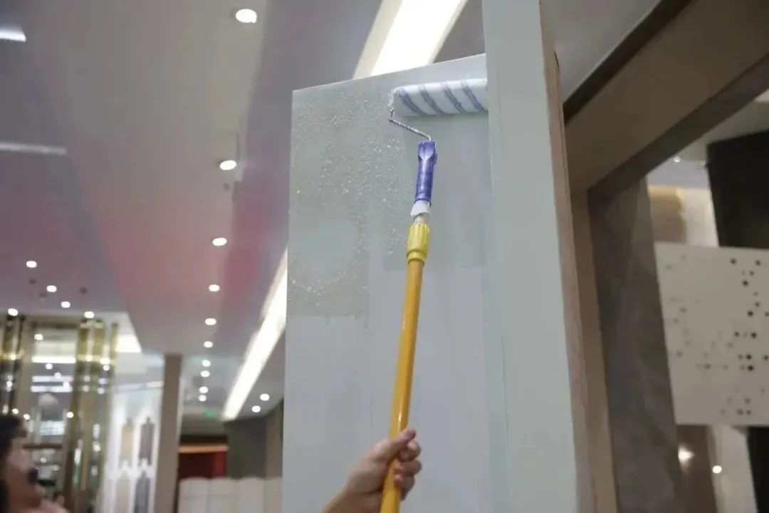 最后,天安集成工程部经理雷榆枫给大家讲解了鹰牌集团质感墙衣的工艺工法和日常使用注意事项等知识,并通过现场实操为营销人员演示了质感墙衣施工全步骤。