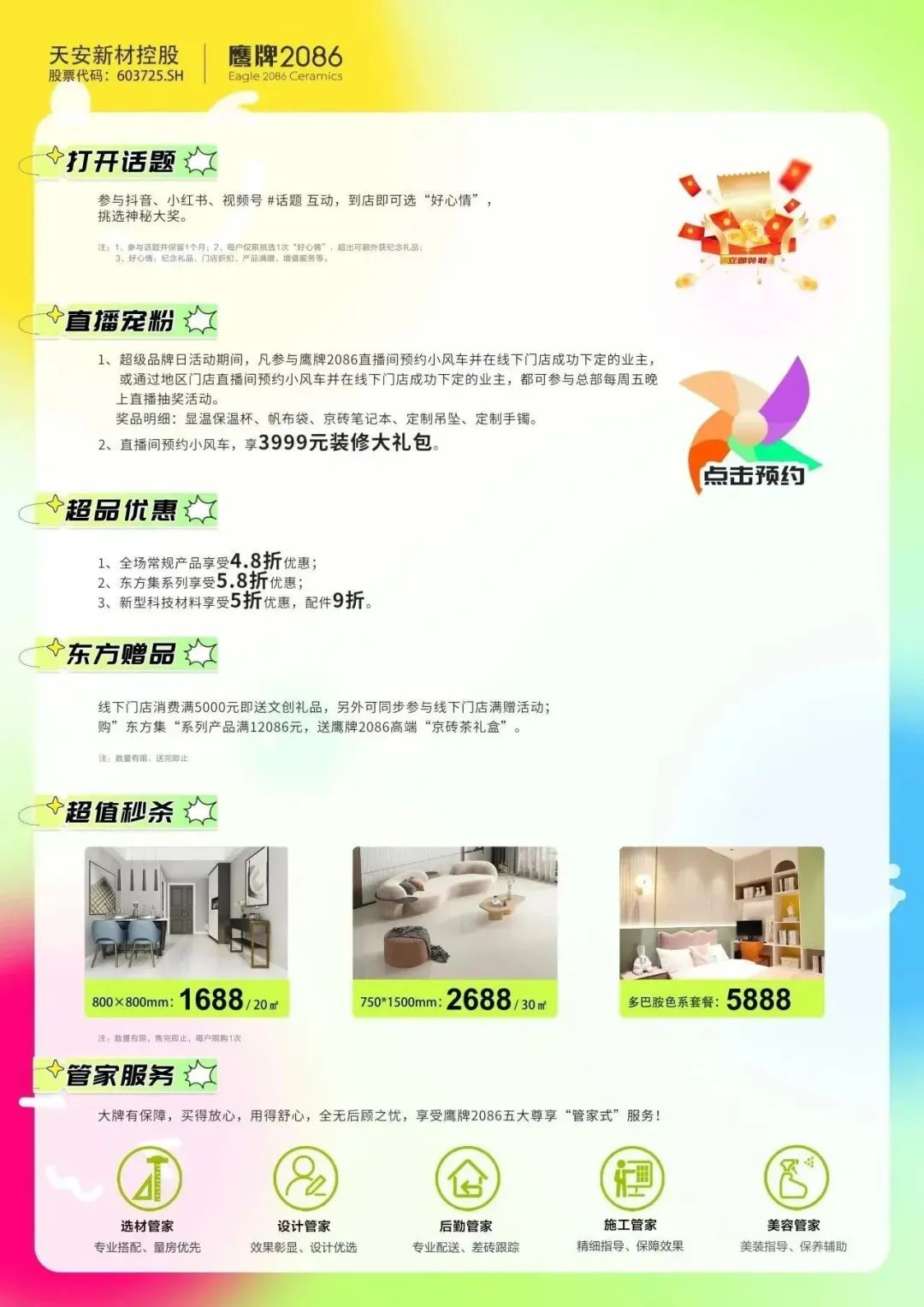 如果装修要挑选良辰吉日的话,那可不能错过鹰牌2086现代砖“双十超级品牌日”。