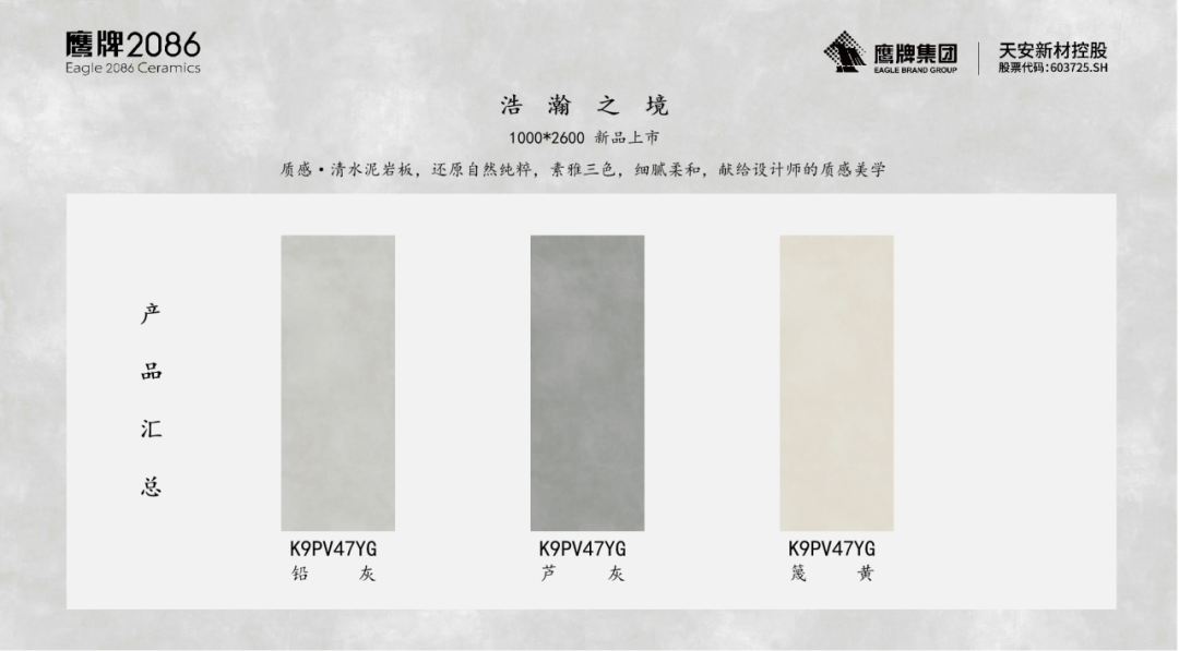 鹰牌2086浩瀚之境系列新品——质感·清水泥岩板,秉承少即是多的设计美学,以极致的简约代替繁复奢华,带来最纯粹的时光痕迹。