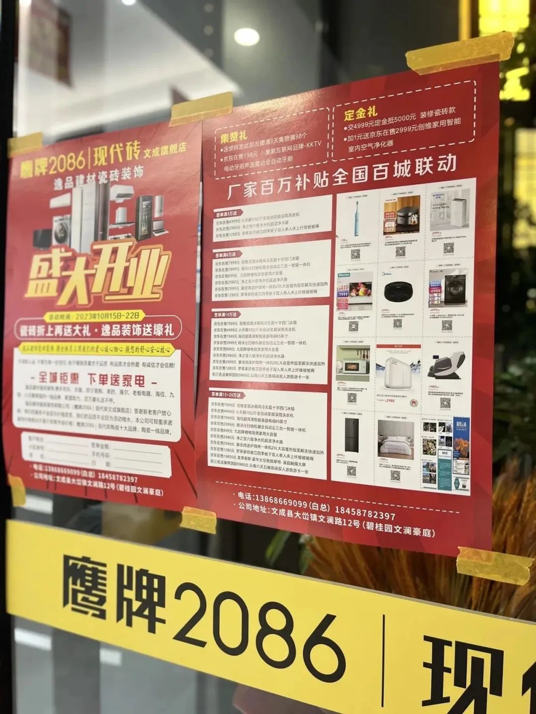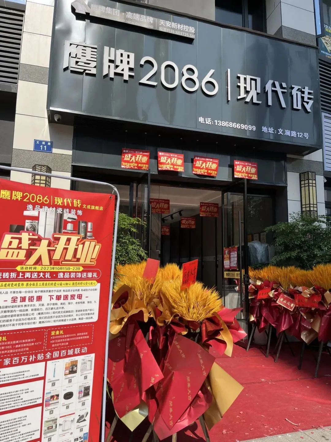 10 月 15 日-10 月 22 日,瓷砖折上再送大礼,豪礼送不停!恭祝鹰牌 2086 文成旗舰店开业大吉、财源滚滚、生意兴隆!