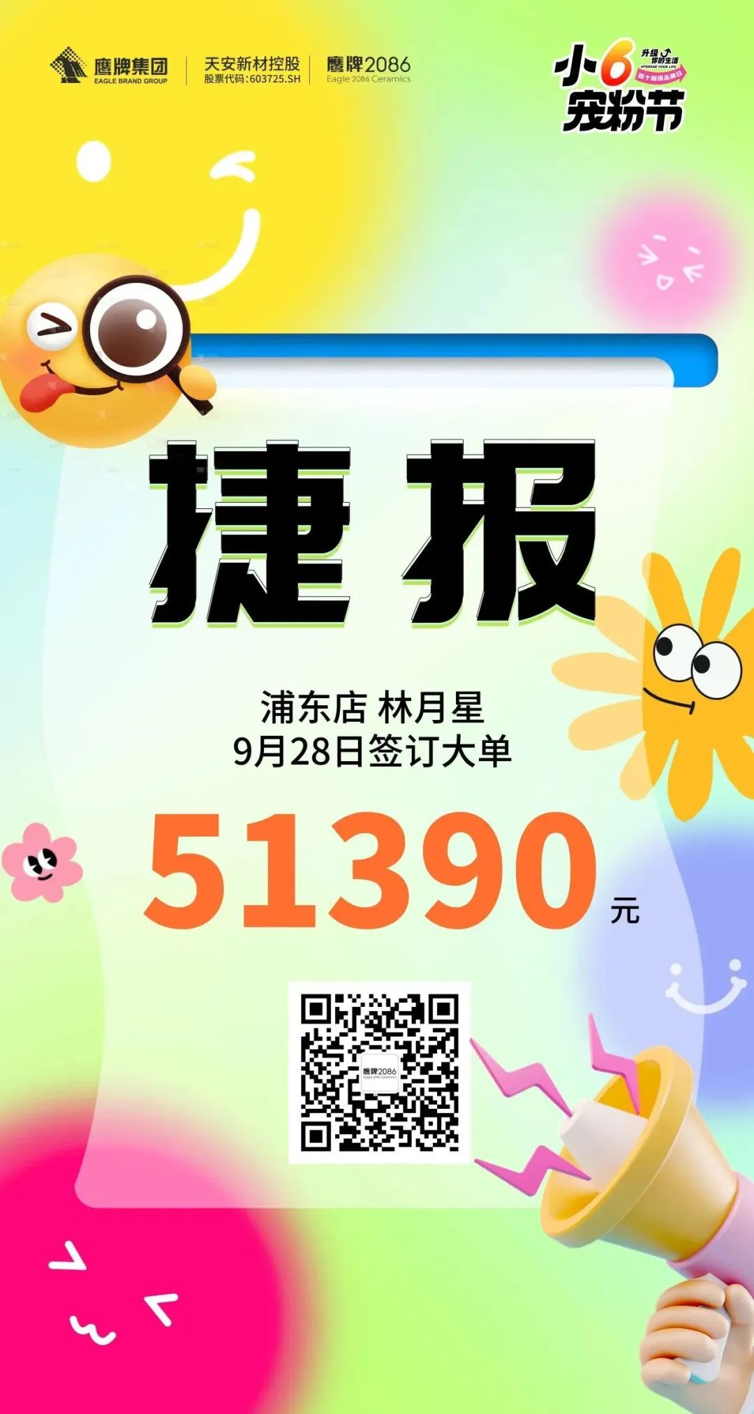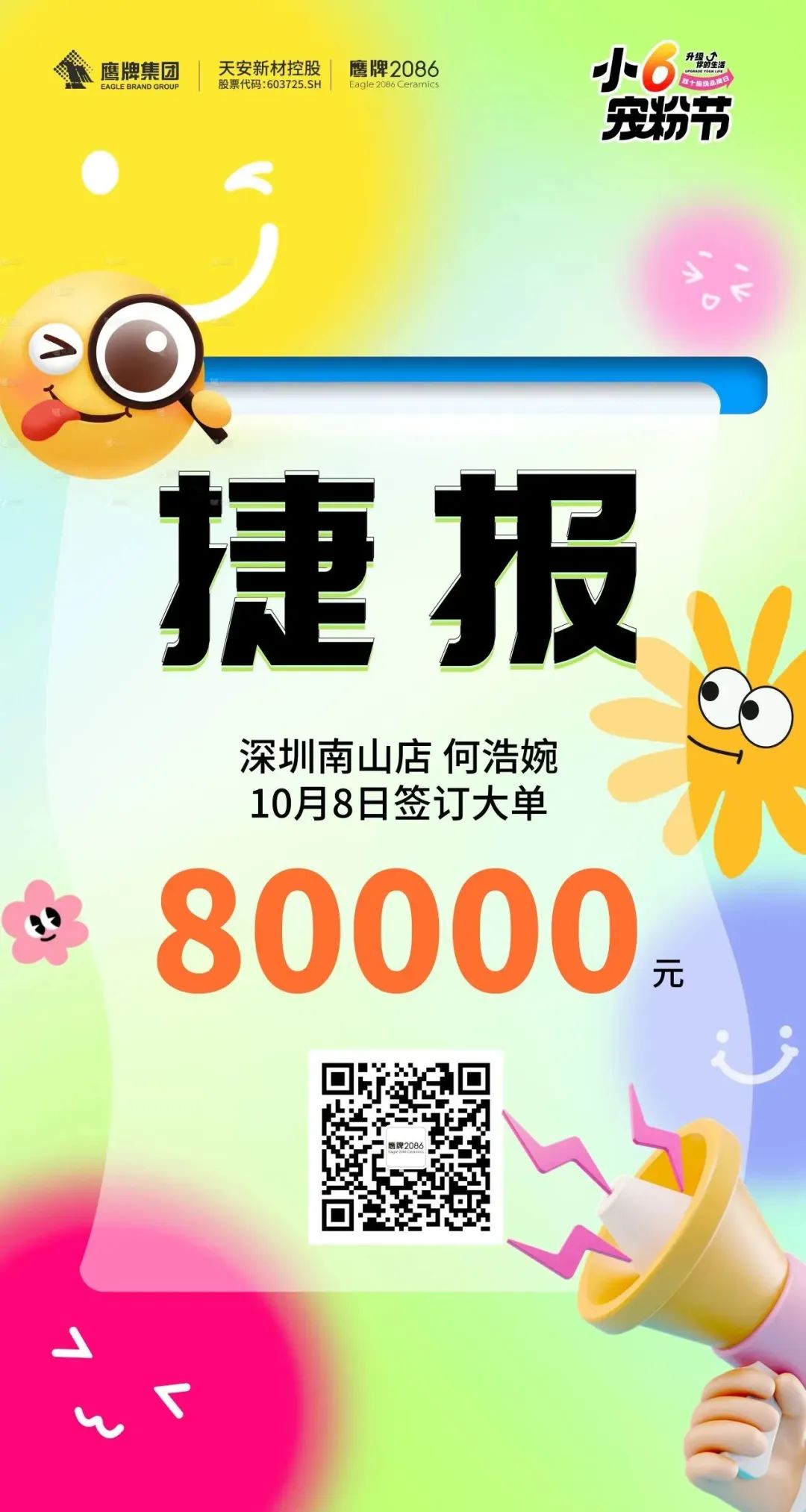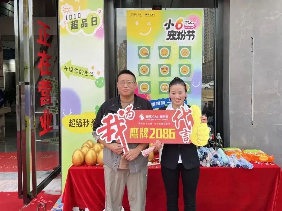 自“小6宠粉节·双十超级品牌日”正式启动至今,已收到了全国终端门店以及各城市消费者的积极参与和好评,销售火爆,大单频传,鹰牌2086助力全国终端门店为广大业主升级理想生活!
