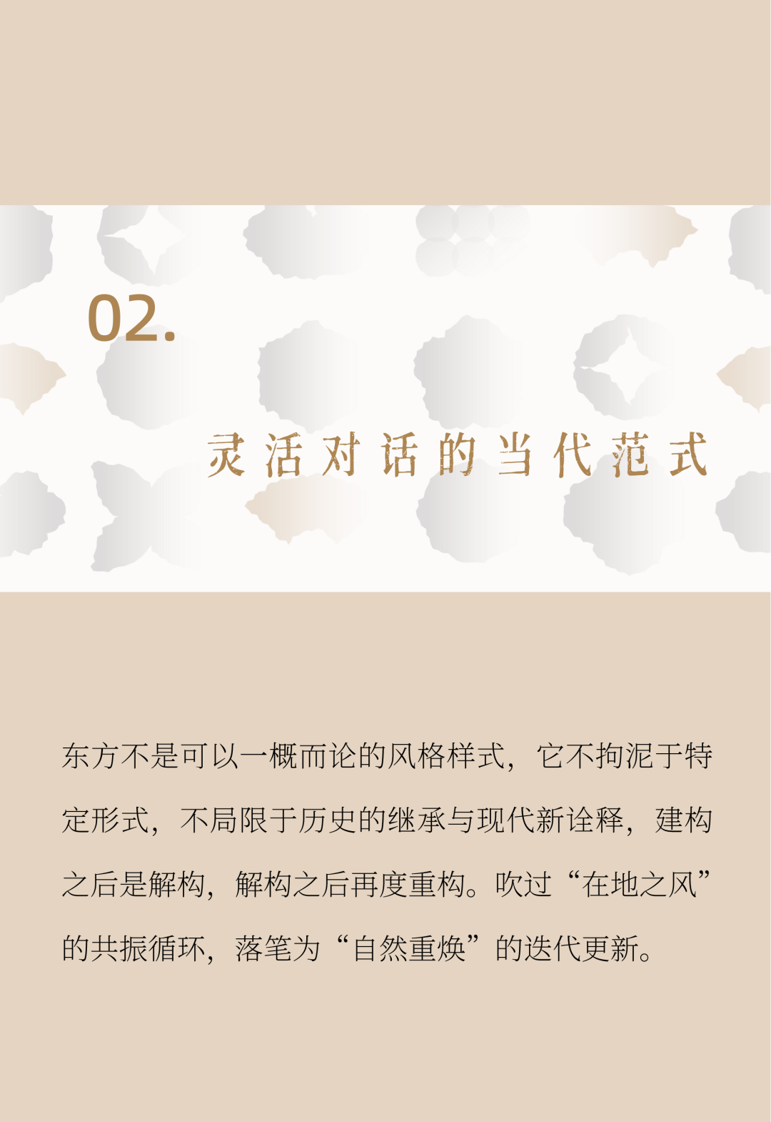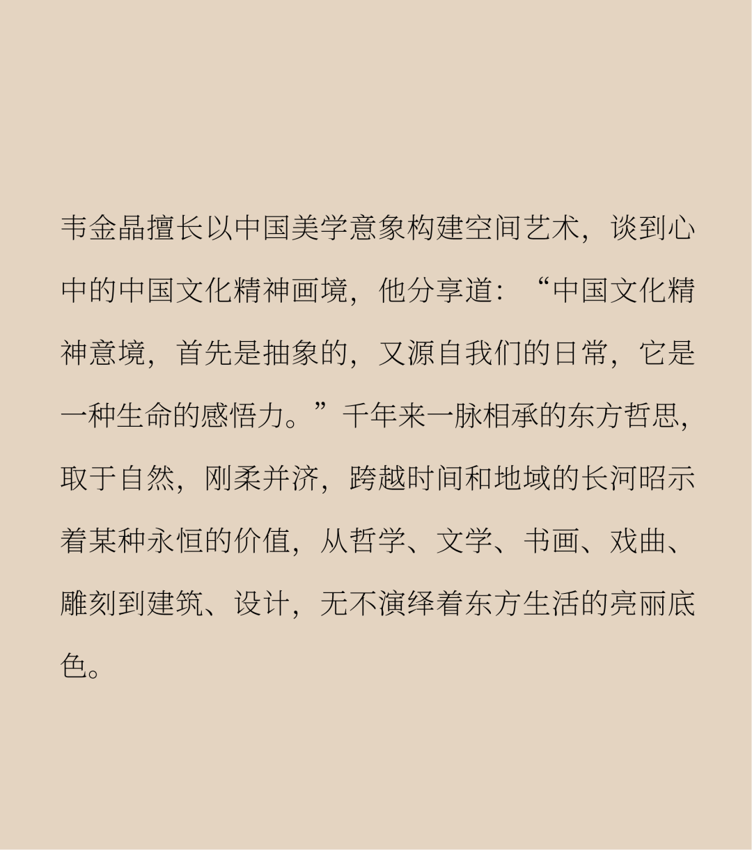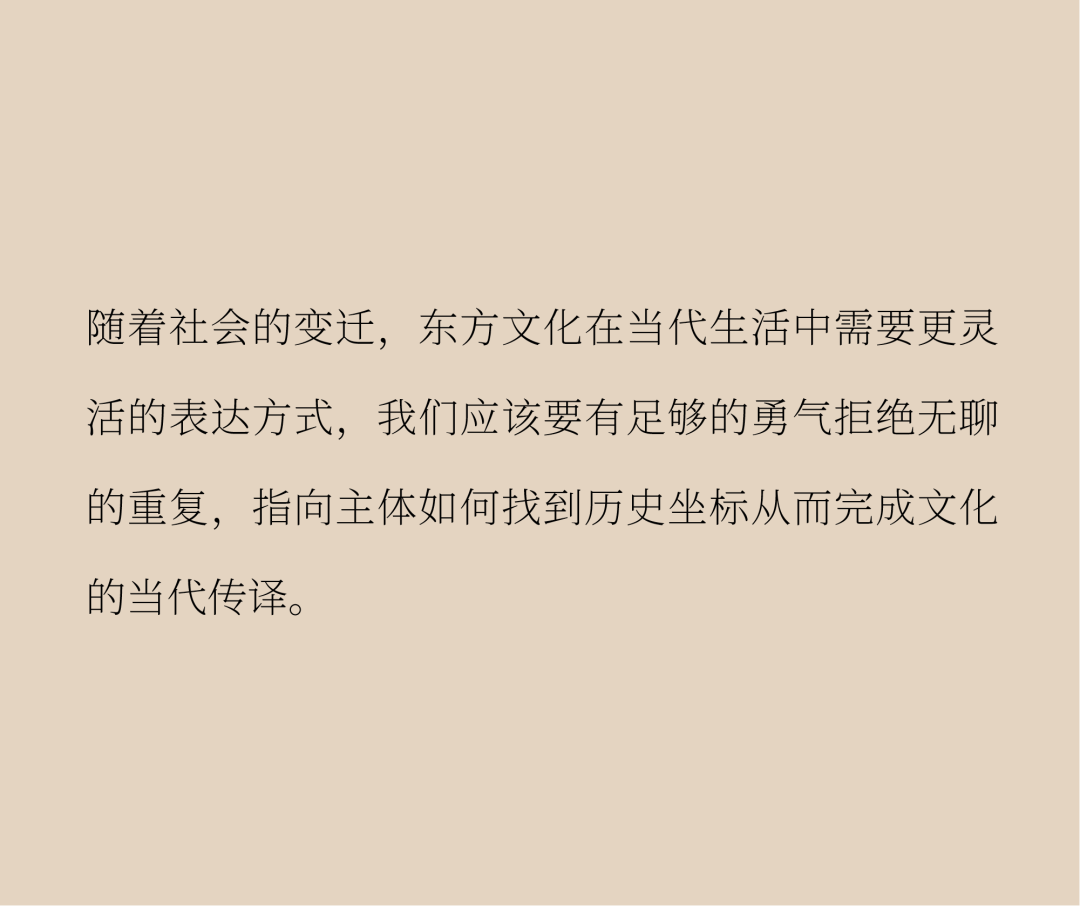 在进击的全球化浪潮里,具有思辨性、主体性的东方智慧逐渐向世界展现锋芒。信步闲庭,能见风骨,民族古老文明的精神性与向外探索的现代东方美学实现了绵延紧密的交融。东方美学正以更多维的回溯、深剖、探索、重创催生出更多的实践和创作。文脉同国脉相连,经历了发言权流变的历史后,文化力量开始从另一个方向-从东方-流回东方。